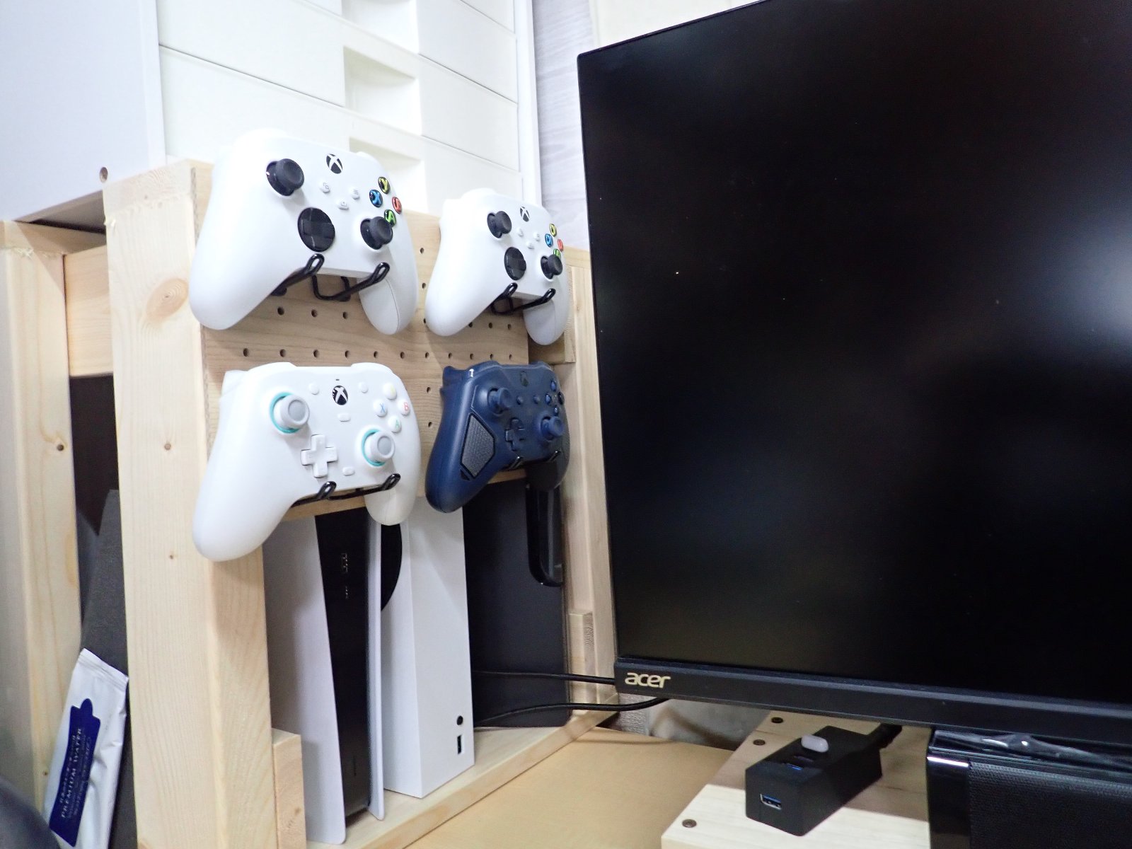 増えてきたコントローラのための収納を考えます。