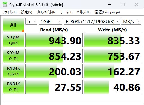 中身はこのSSDです。性能的には一般的ですかね?