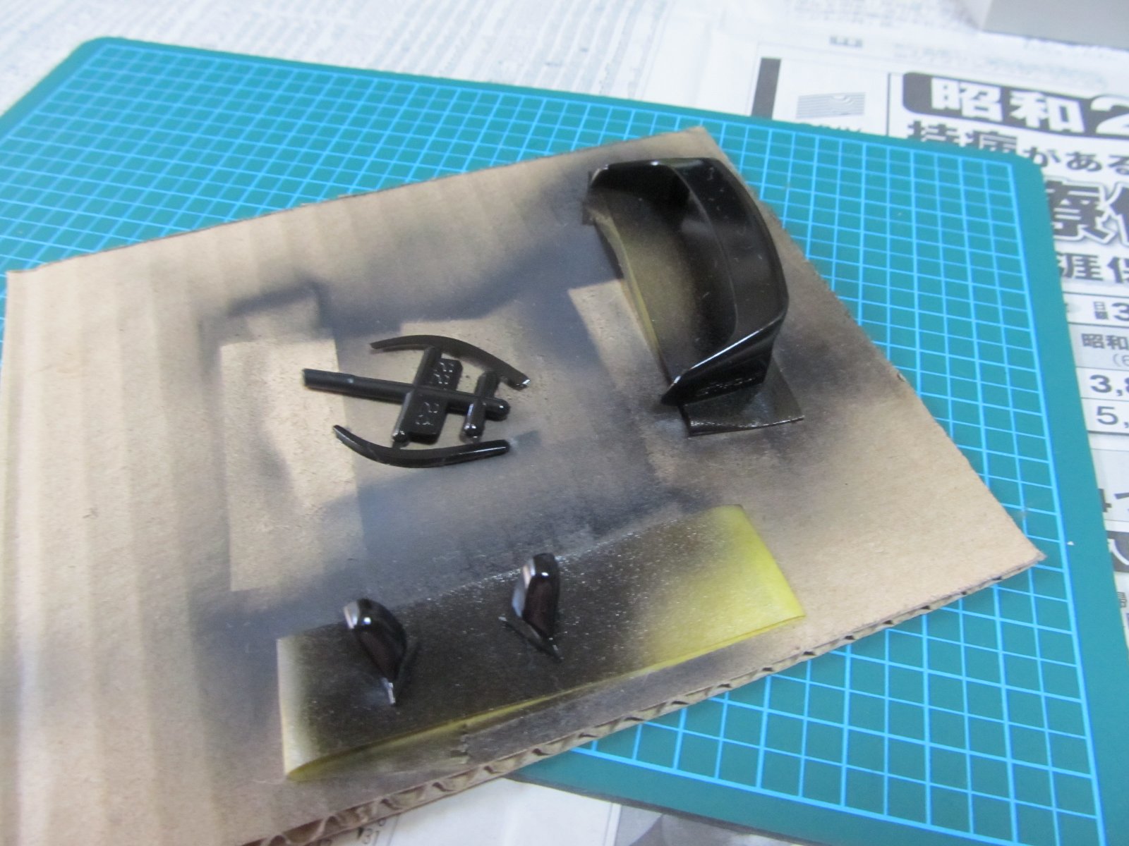 | シートは裏を埋めたので、サフを吹いて確認します。 | |