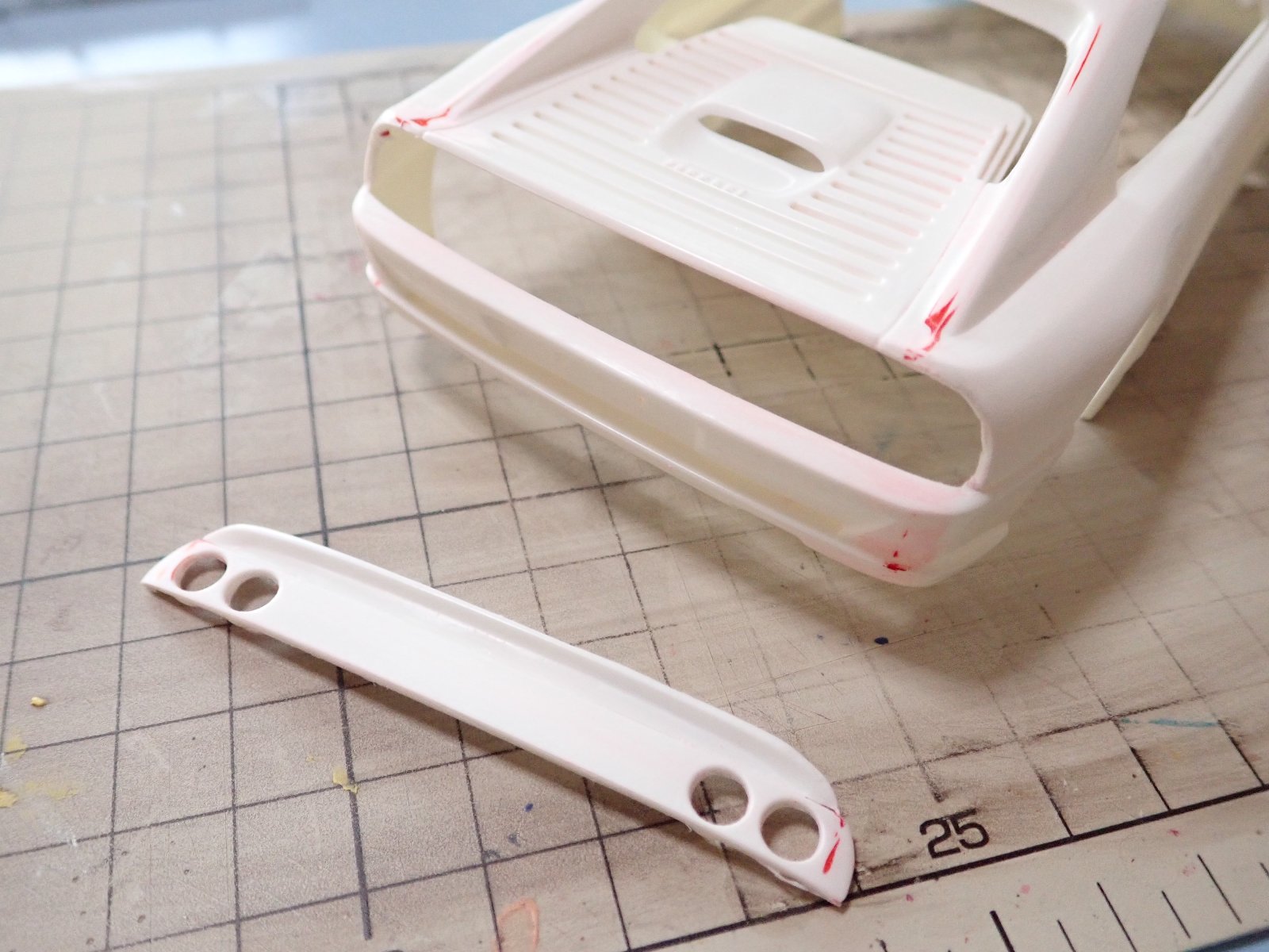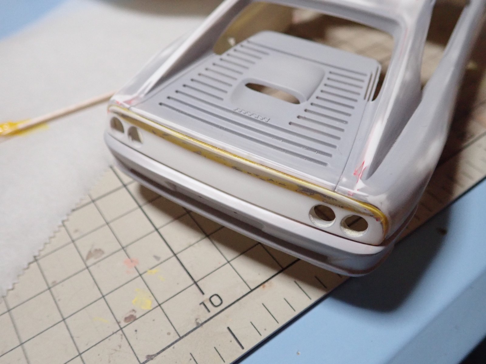 急に暑くなるので、全然進んでません。今回はリア部分を切り離しました。チャレンジの実車の写真はテール周りは一体だったので整形していこうと思います。