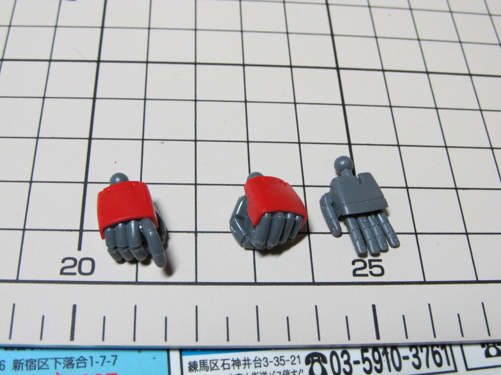 キット付属の手と比較。一回り小振りになるけど違和感はあまり無いですね。