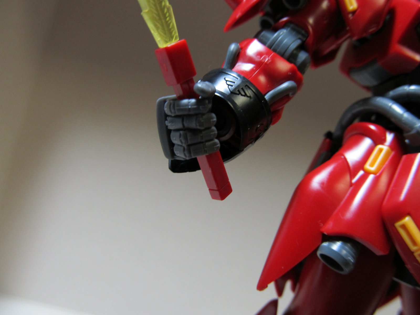 お久しぶりのシナンジュ。UCのep7が始まってしまうので、それまでには完成させたいなぁ。ということで極め手(丸)を装備してみました。
