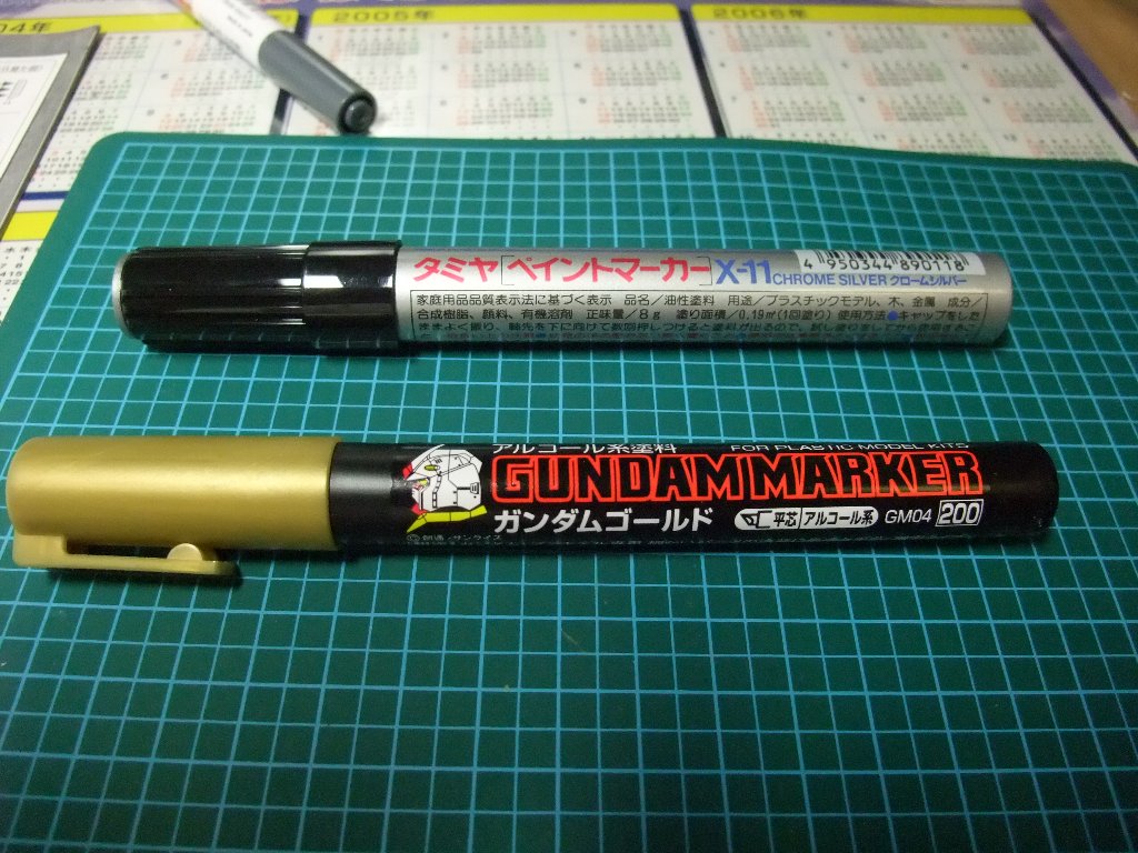 ダラダラと作成を始めます(笑)。今回のコンセプトはエアブラシなどで塗装しない、いわゆるお手軽作成を目指します。正直、どの程度になるかわかりません。なのでゴールドとクロームシルバーを購入してきました。塗装は基本的にマーカーで行います。