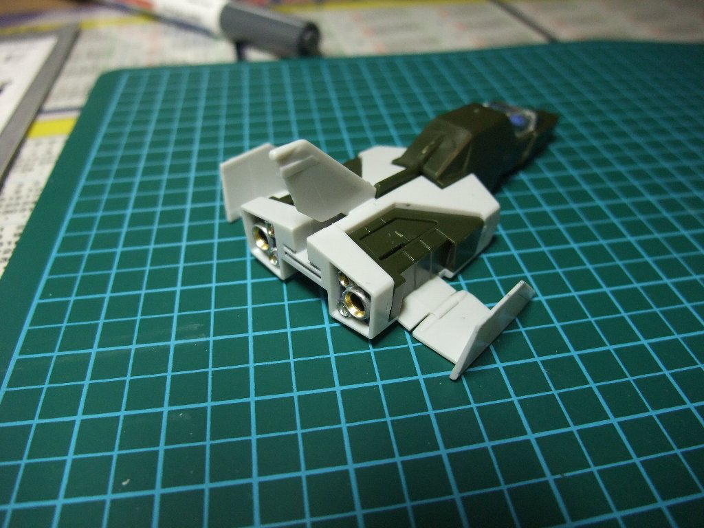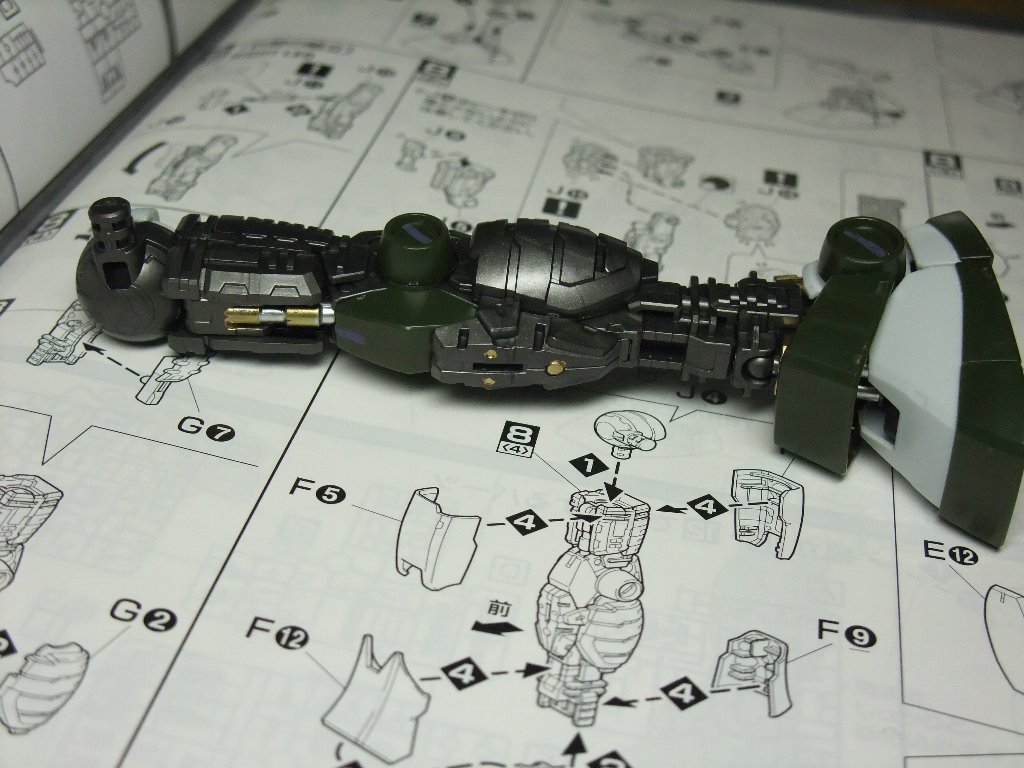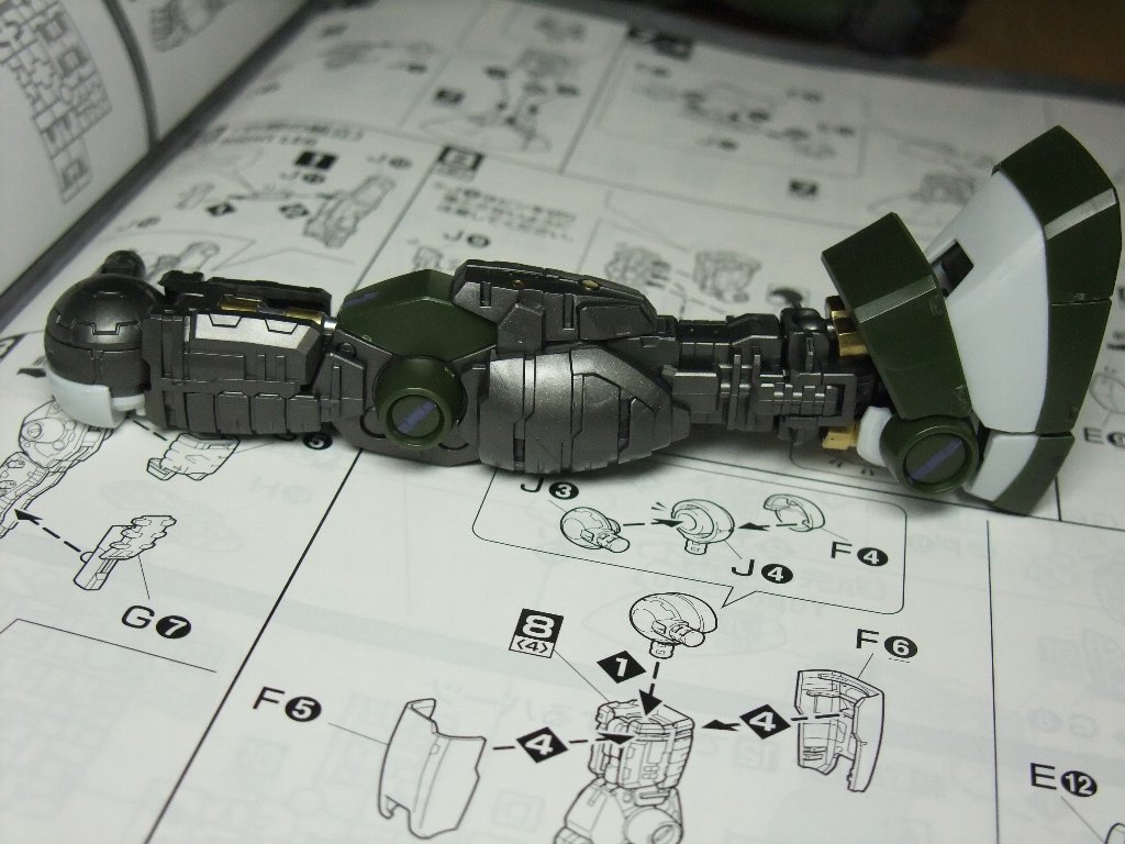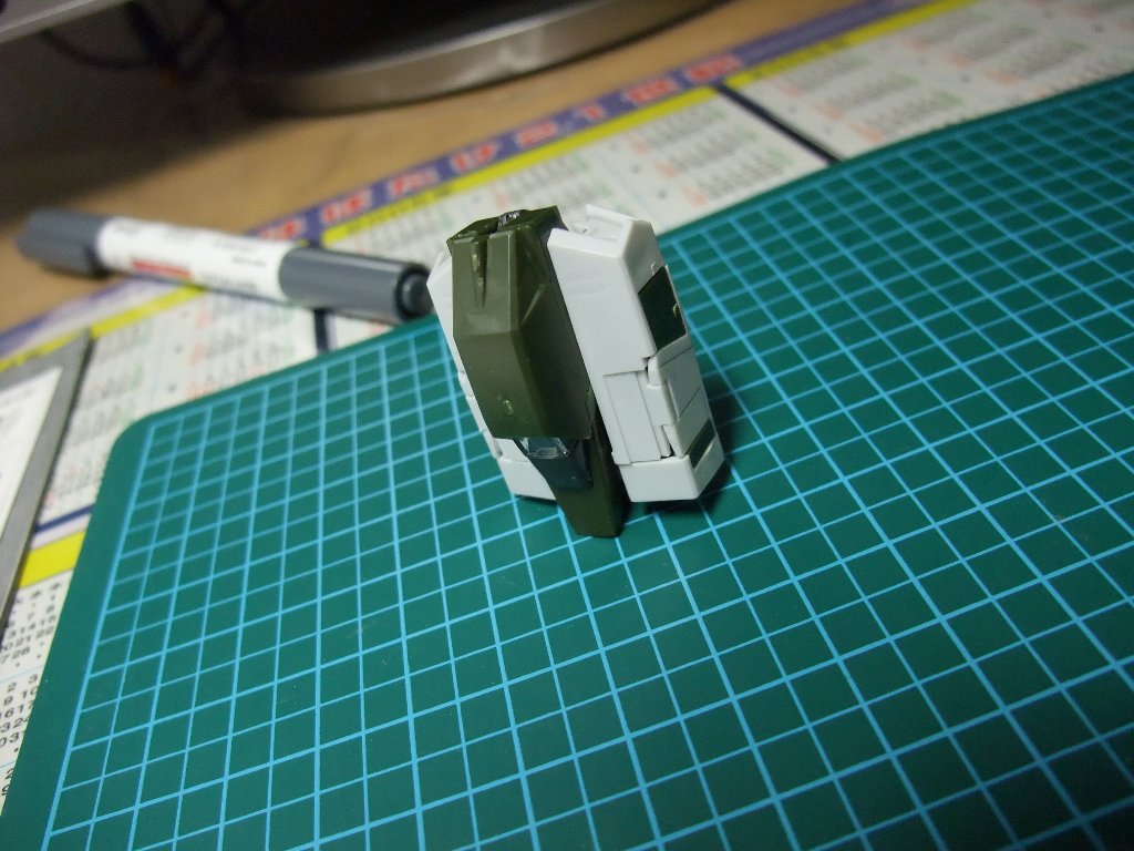 プロポーションは非常に良いですね。無骨な感じが出てて。ただ、やはりゲルシートはつらいかも。特に脚の間接部の部品がポロポロ取れます(動かそうとすると)。ここら辺はもうちょっと対策が必要ですね。