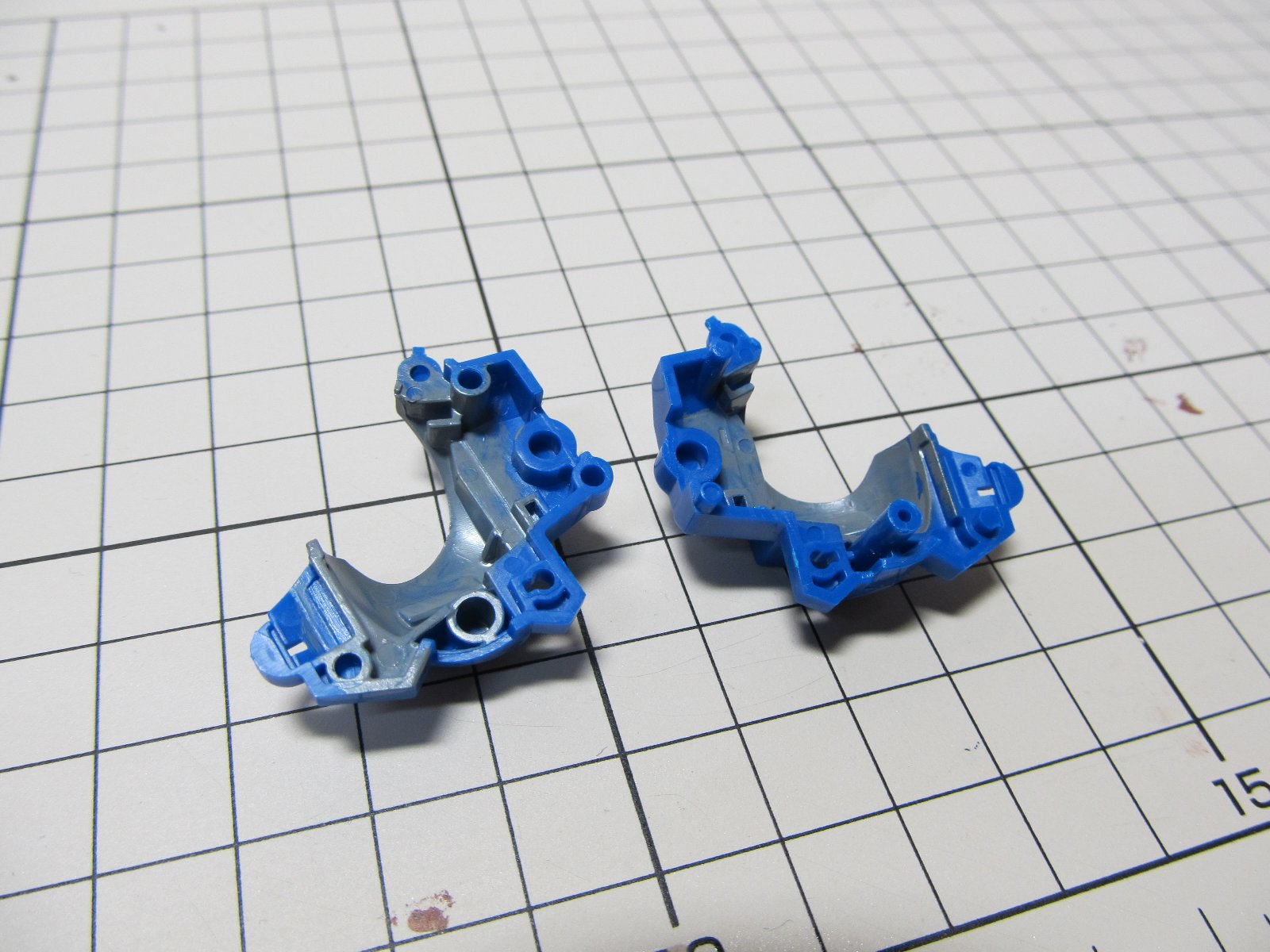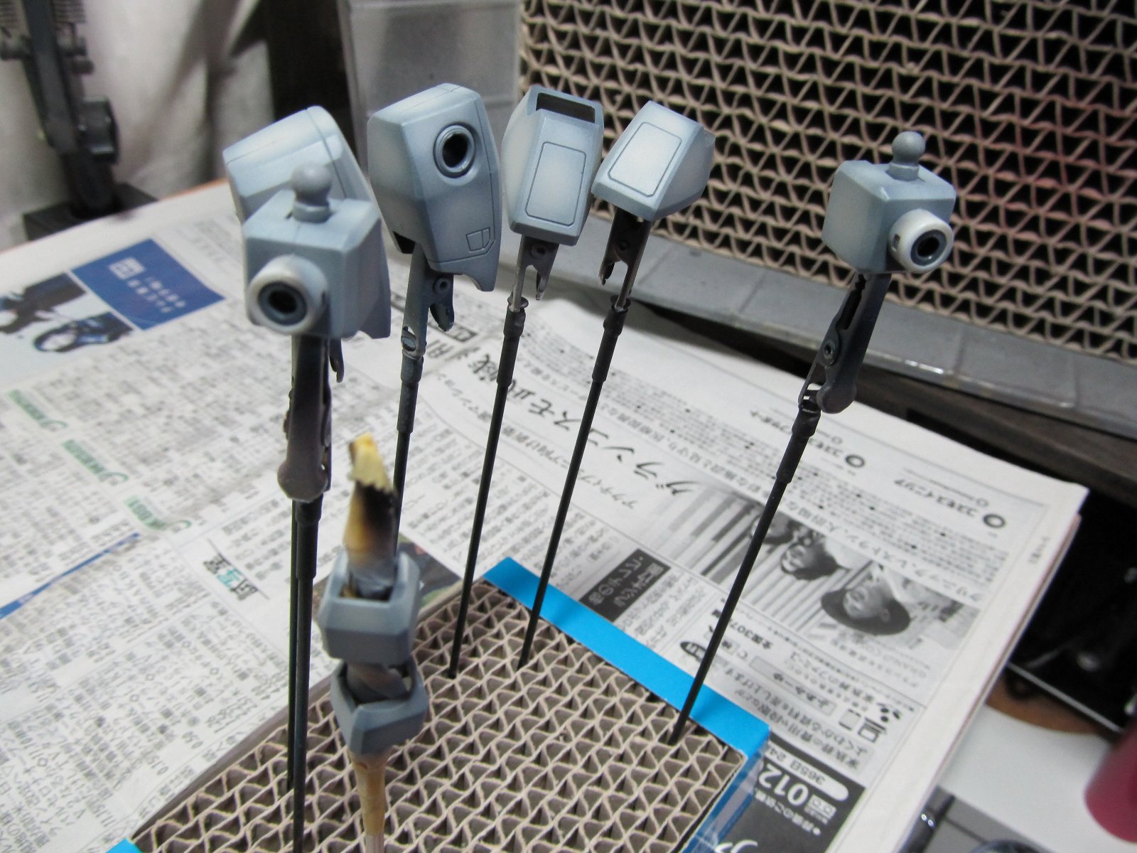 表面の処理がやっと終了したので、塗装に入ります。まずはミッドナイトブルーで外装の全パーツを塗装します。