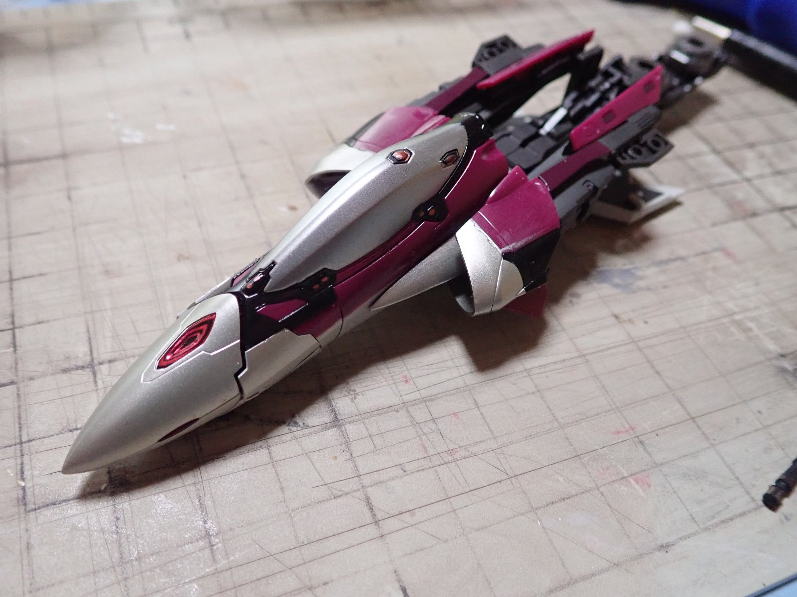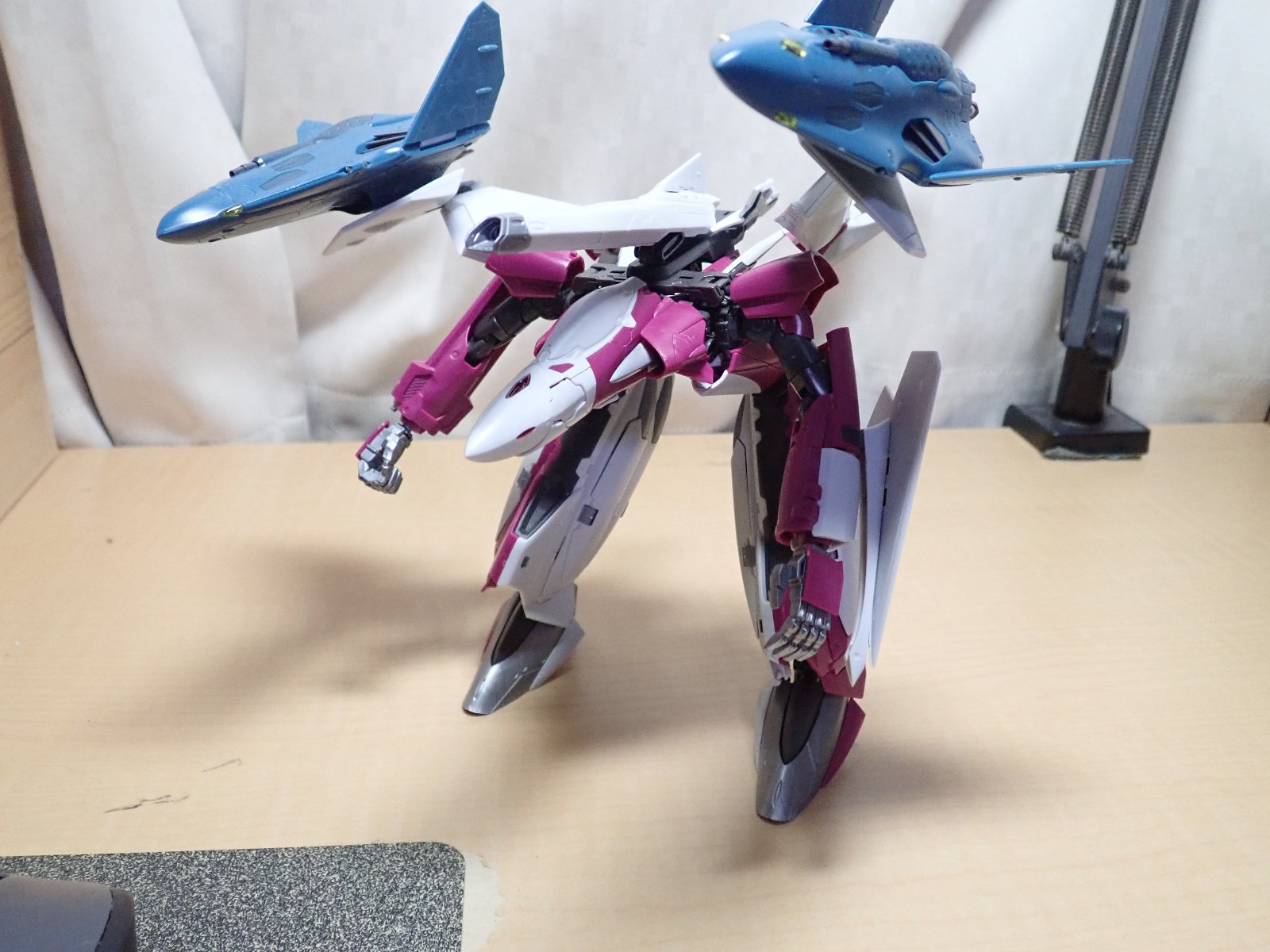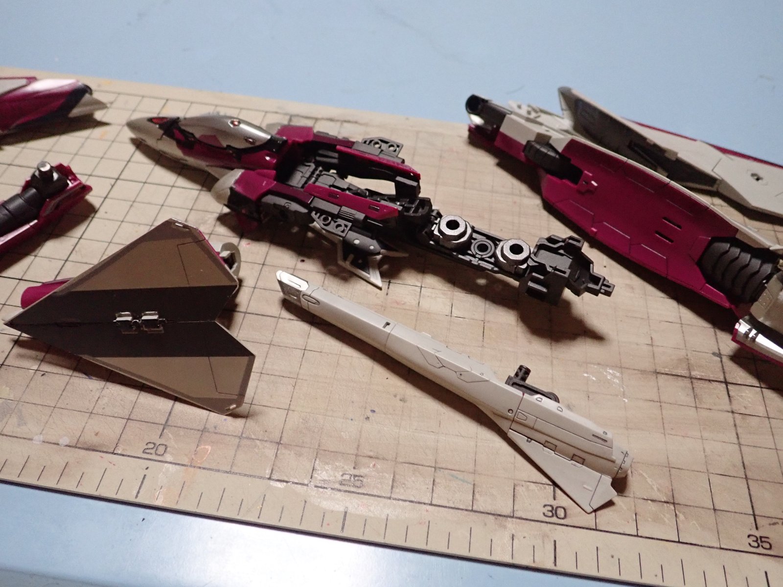 仮組しました。組むのは大変だけど出来上がるとカッコイイです。VF-25の時代に比べたらカッチリロックされて非常に綺麗に変形できます。ただ、変形トイでは無いので数回変形した後は、お気に入りの形態で飾っておくという感じでしょうか。また、変形も複雑なので塗装はしない方がよいでしょうね。