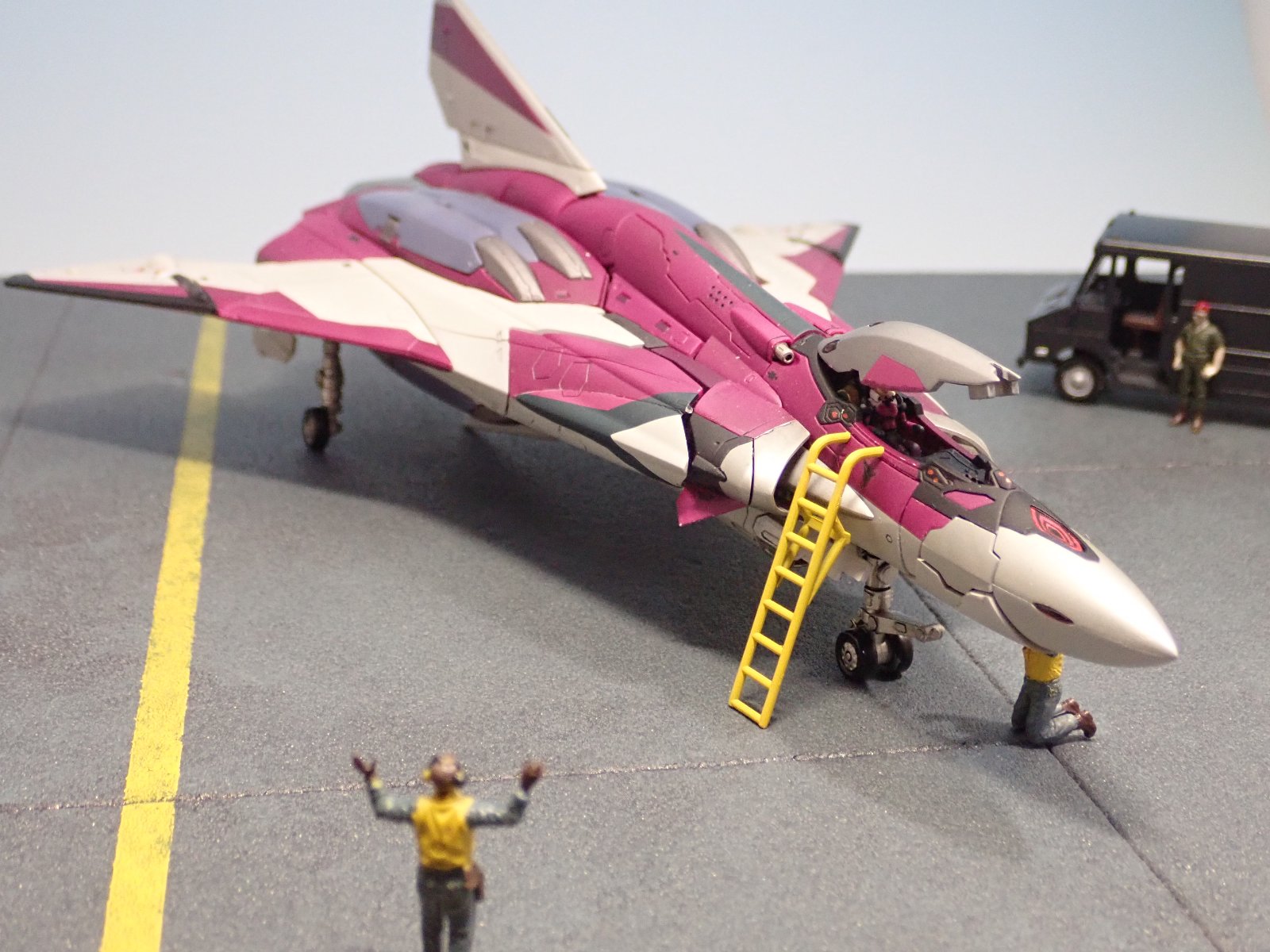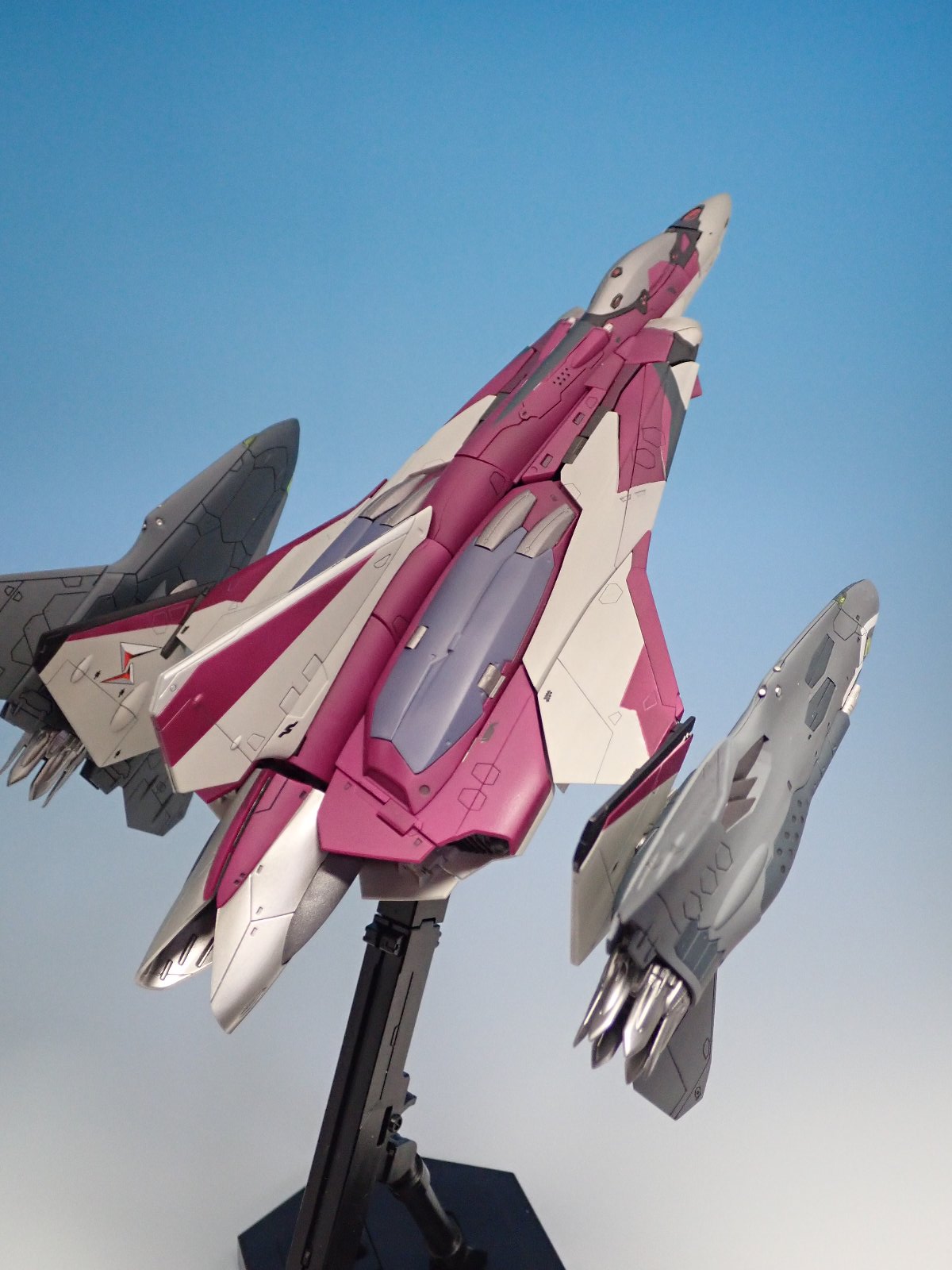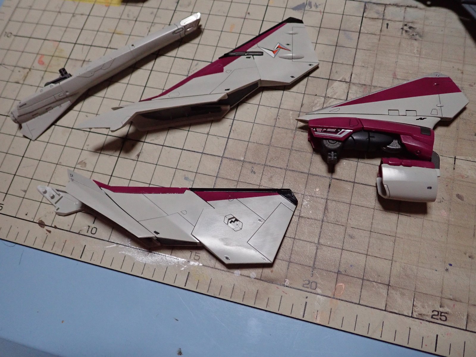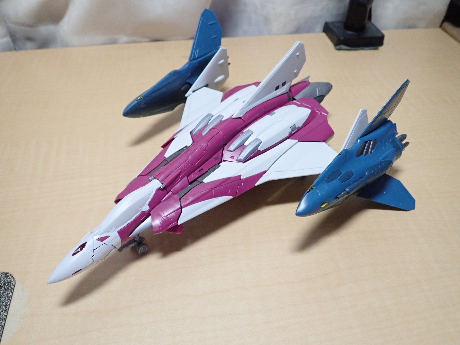 仮組しました。組むのは大変だけど出来上がるとカッコイイです。VF-25の時代に比べたらカッチリロックされて非常に綺麗に変形できます。ただ、変形トイでは無いので数回変形した後は、お気に入りの形態で飾っておくという感じでしょうか。また、変形も複雑なので塗装はしない方がよいでしょうね。
