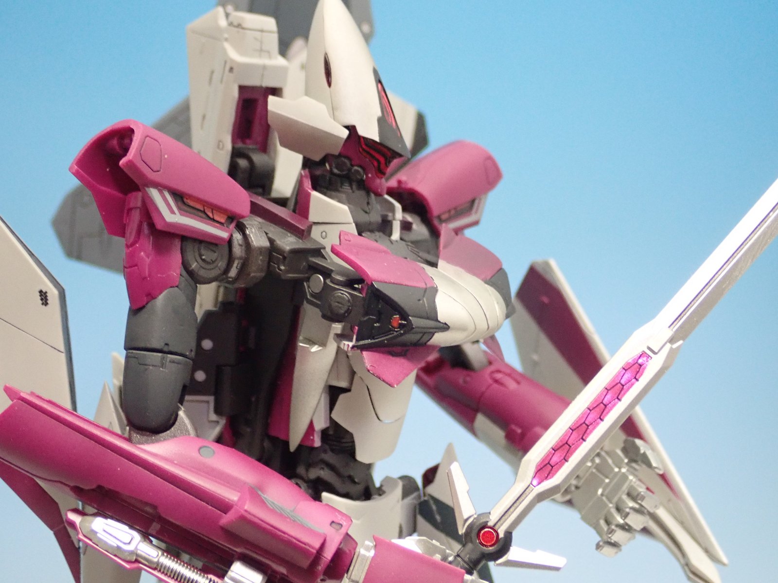 撮り直しました。変形機構が意外性が多く楽しいのですが、塗り分けが面倒でしたね。塗り分け部分がよく分からないところもあり苦労しました。でも、完成するとカッコイイです。