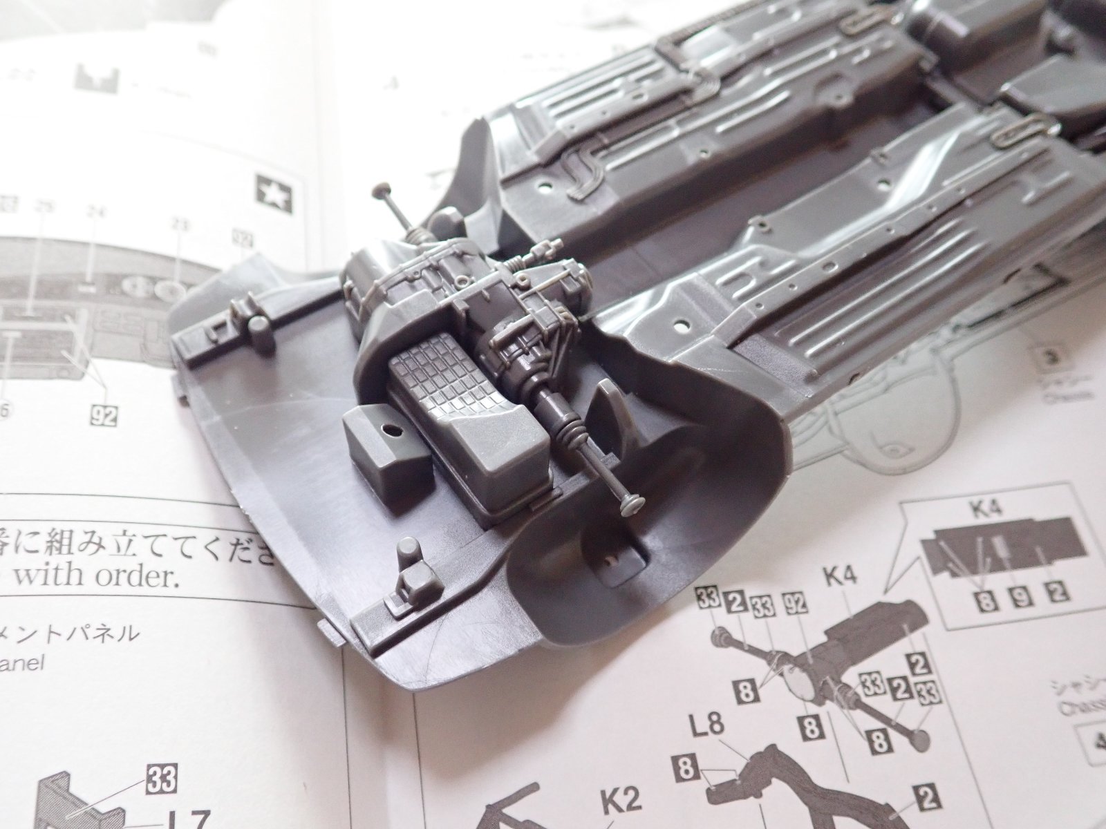 今日はシャーシの作成です。本当はシャーシも白なんでしょうけど、黒で塗りました。別パーツ化が多いのでマスキングしなくてもそれっぽい塗分けが出来ますね。