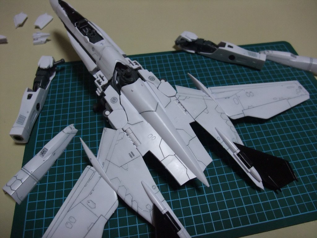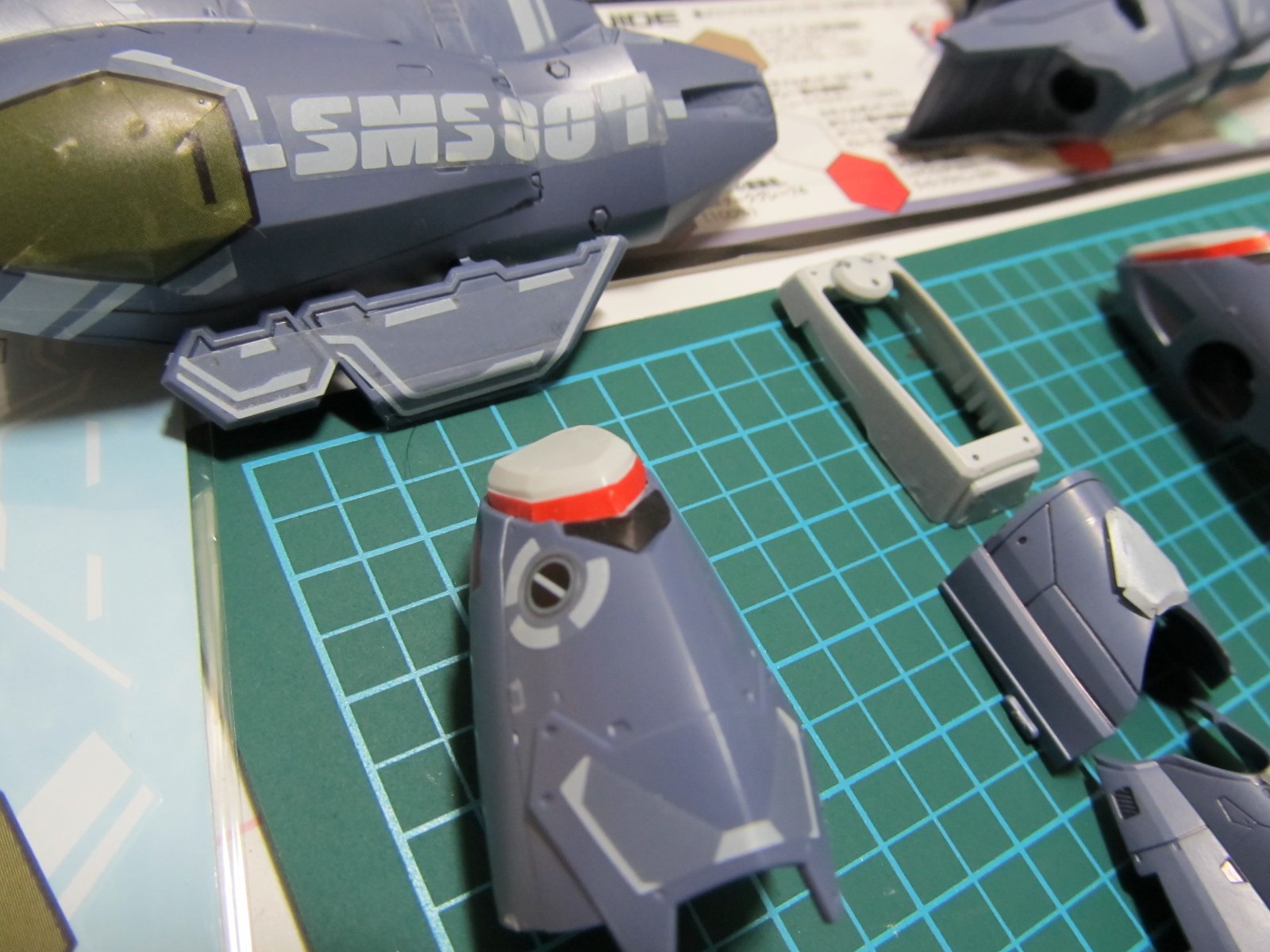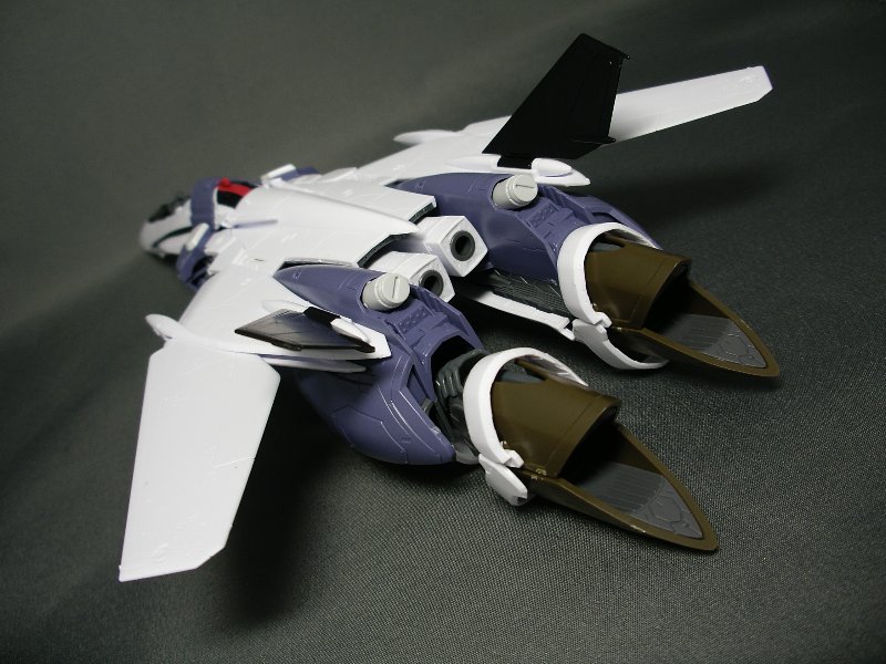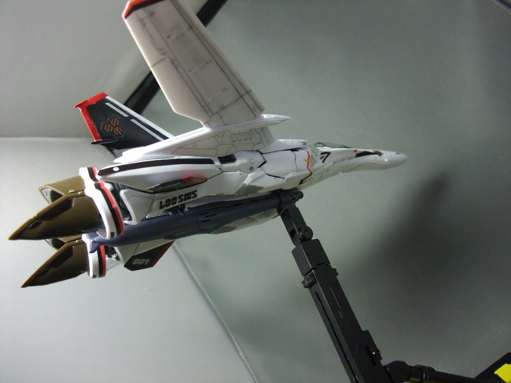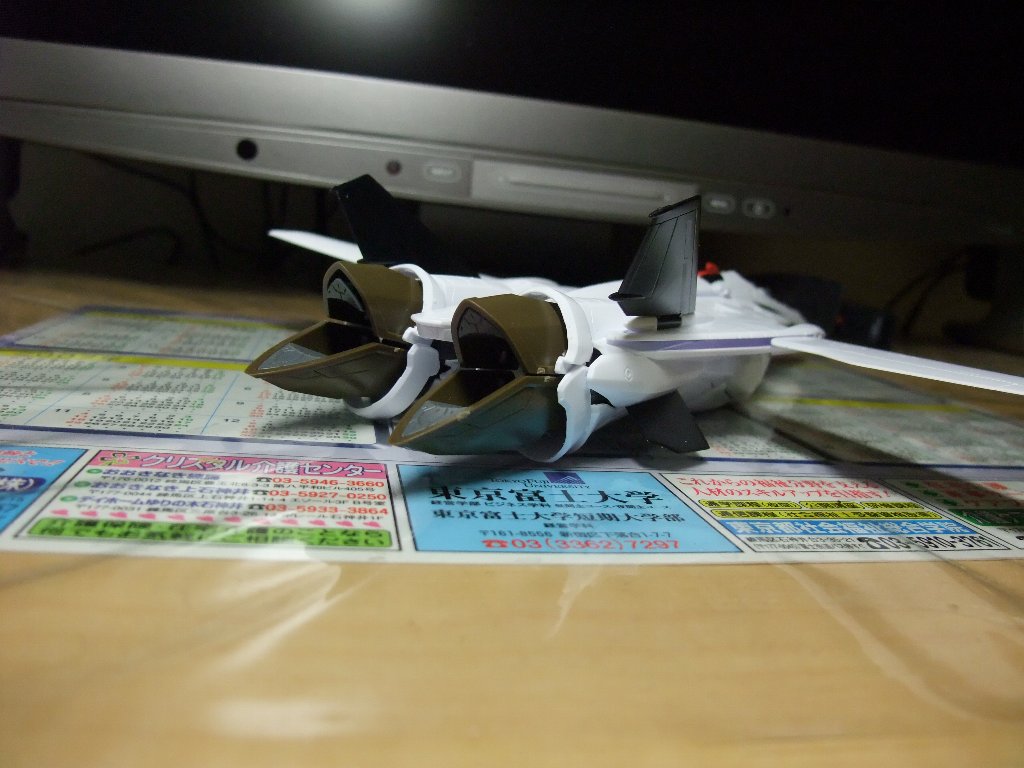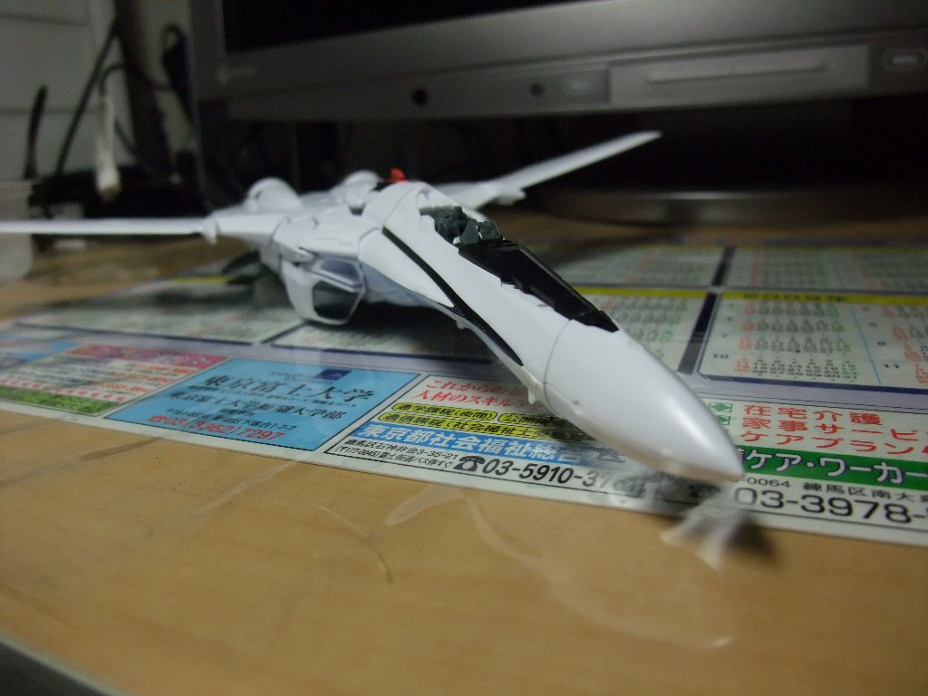 結局、スーパーで無いノーマルでも組んで見ました。やっぱり飛行機としてはこちらの方がラインが綺麗ですね。スーパーとは腰部分の分解と一部パーツの共用(シールドやフトモモにつく装甲など)があるので完全互換は考えなくてはいけませんね。出来れば両形態で楽しみたいものです(複数作るのはちょっと・・・)