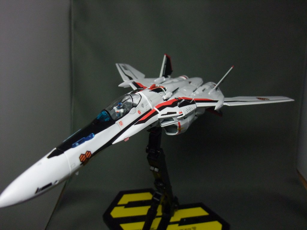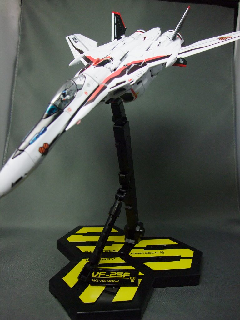まずは、ノーマル版で完成です。スーパーパックは何処に行ったのやら。でも、VF-25はノーマルのファイター形態が一番綺麗ですね。アクションベースもSMSバージョンです。