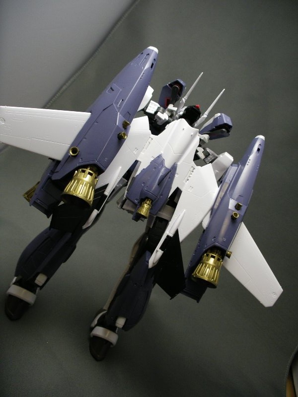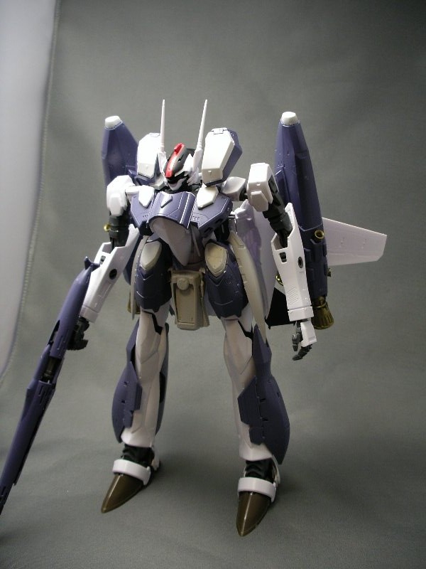 ガウォーク形態。VF-25の印象(特にアルト機)は1話のこのイメージが濃く出ています。もう少し足がハの字になるとさまになるんですけどね。