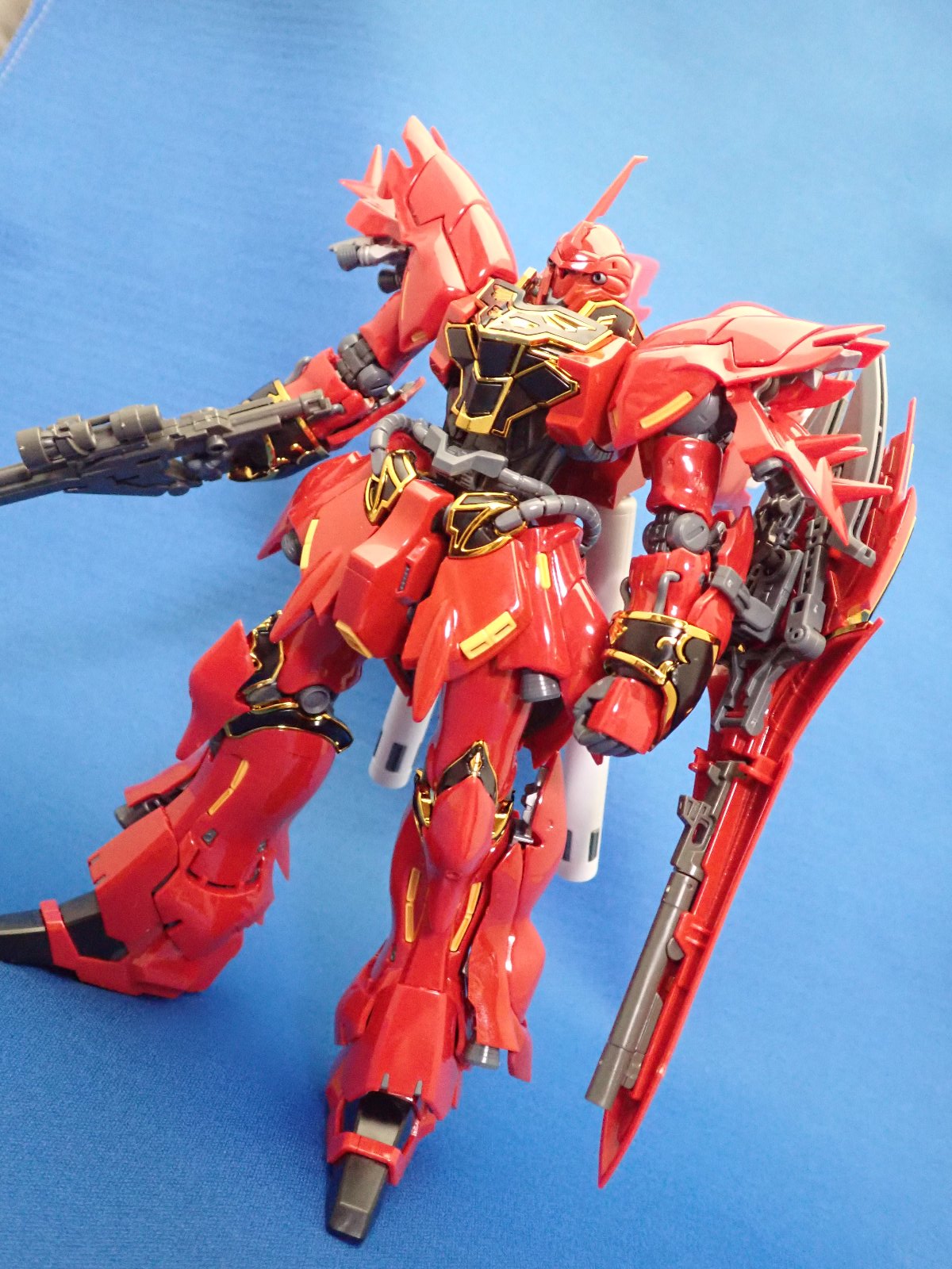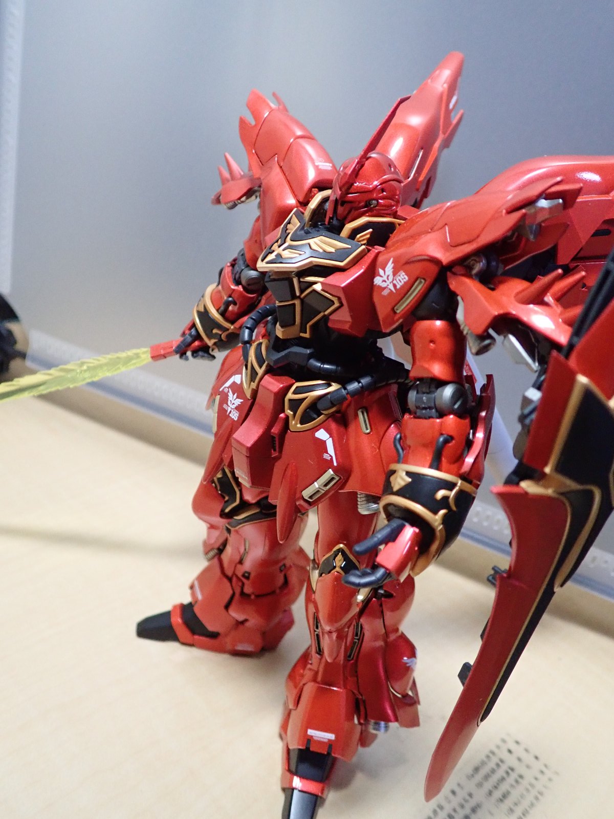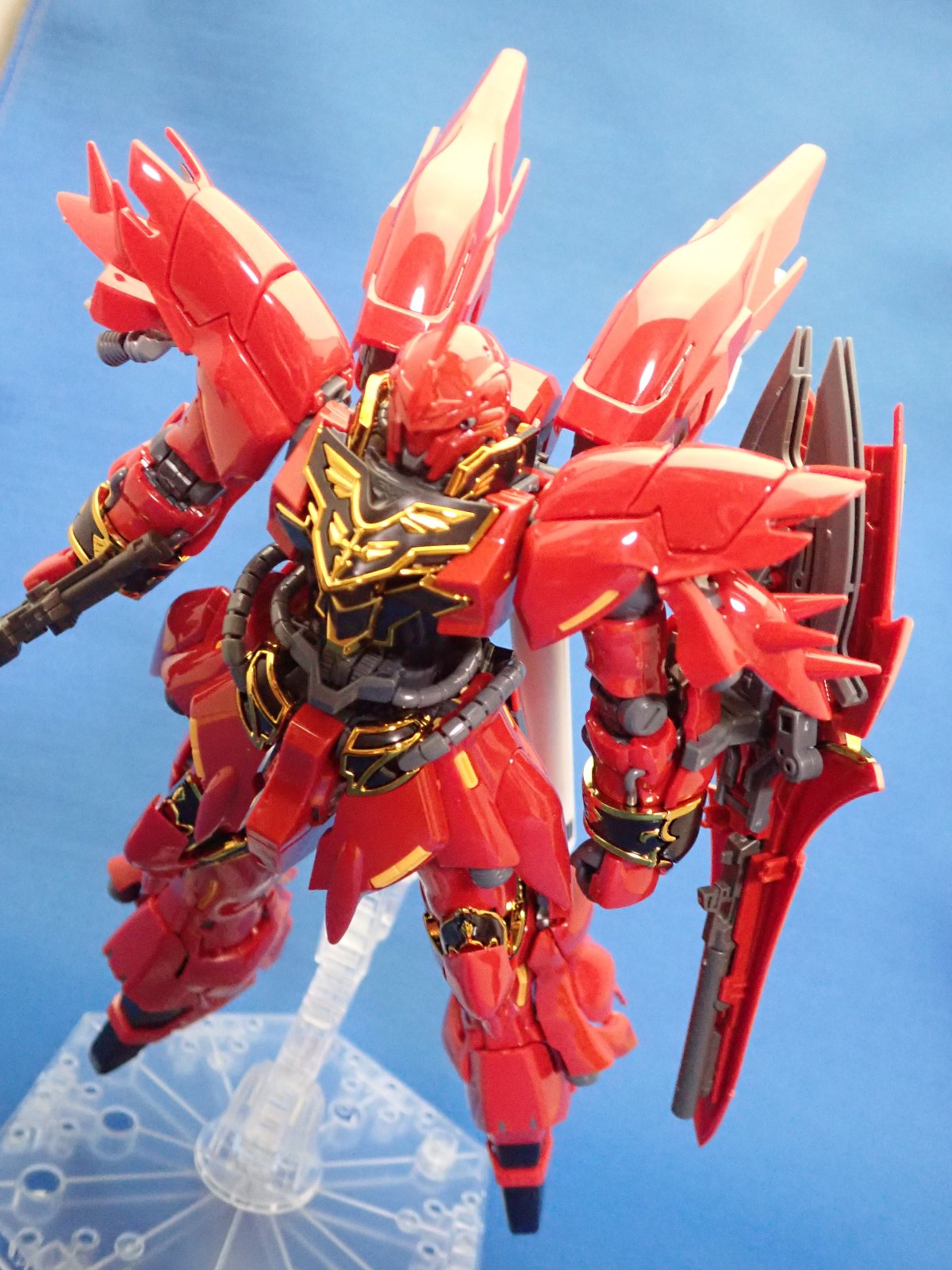 パチ組みしました。金のふちが別パーツで綺麗に出来上がるのがとても良いですね。また、ボディはツヤツヤです。正直、充分シナンジュです(笑)。可動ギミックも多くてとても楽しめますね。背中が重いのはしょうがないか。 さて、どのように作成していくか思案中です。前回作ったRGサザビーのようにメタリック風にするか、HGUCの時のようにマットで行くか悩むなぁ。