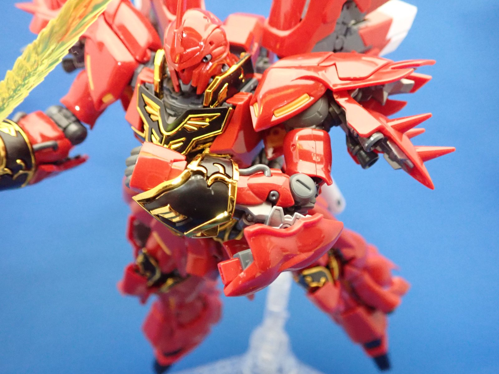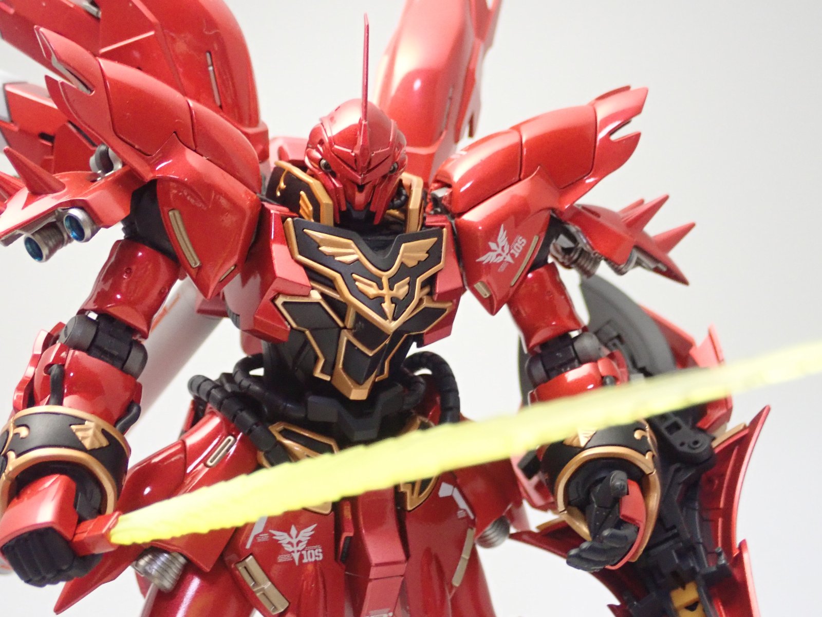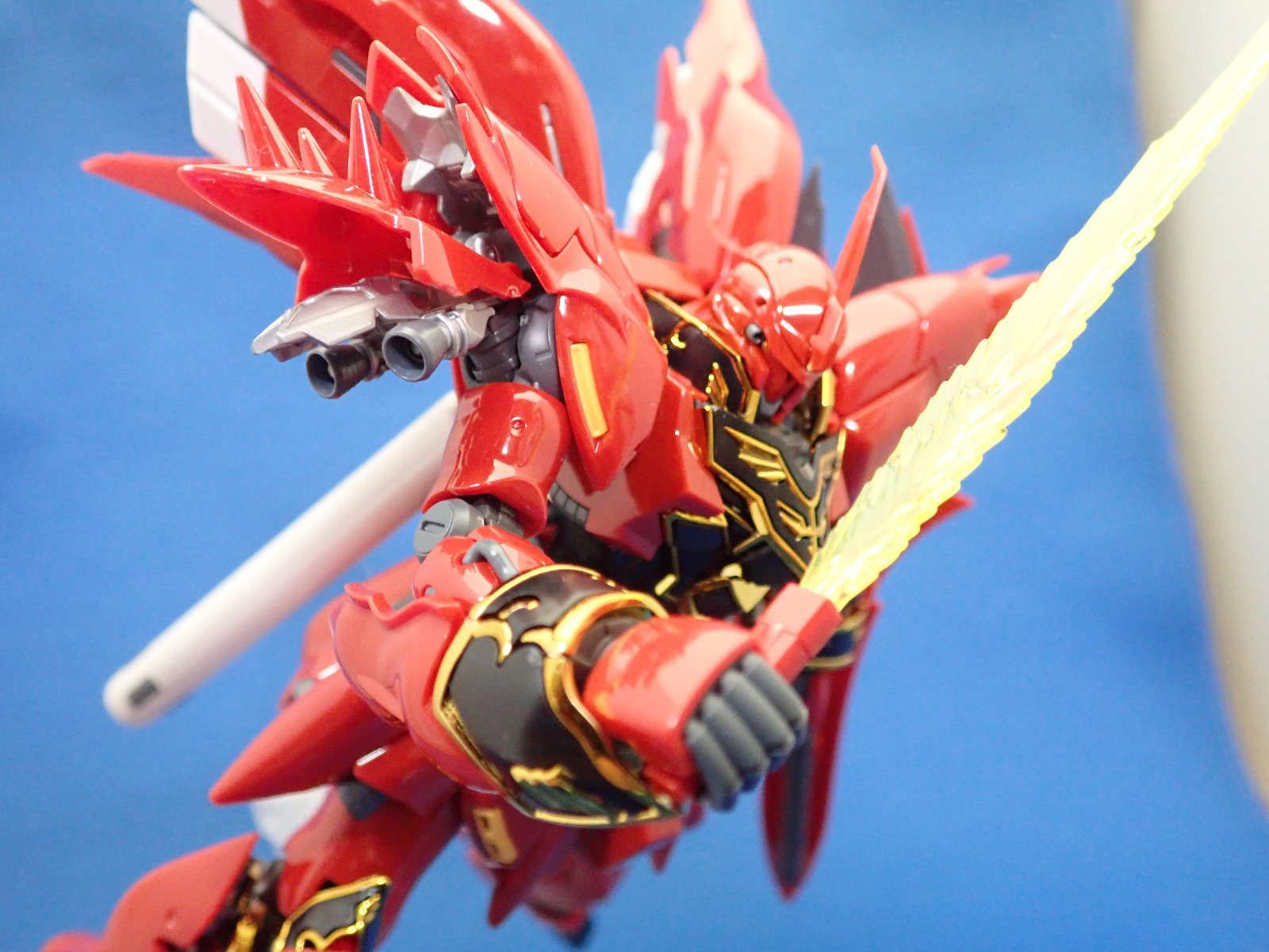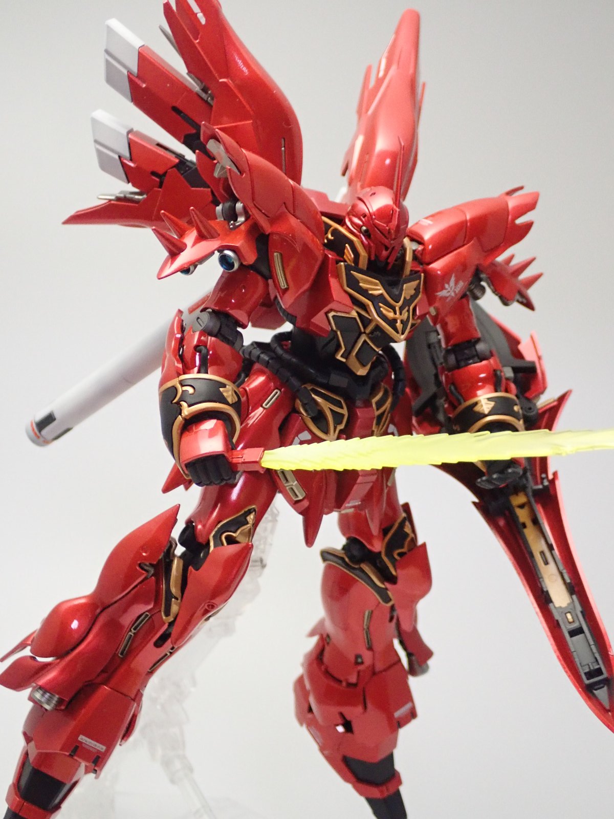 パチ組みしました。金のふちが別パーツで綺麗に出来上がるのがとても良いですね。また、ボディはツヤツヤです。正直、充分シナンジュです(笑)。可動ギミックも多くてとても楽しめますね。背中が重いのはしょうがないか。 さて、どのように作成していくか思案中です。前回作ったRGサザビーのようにメタリック風にするか、HGUCの時のようにマットで行くか悩むなぁ。