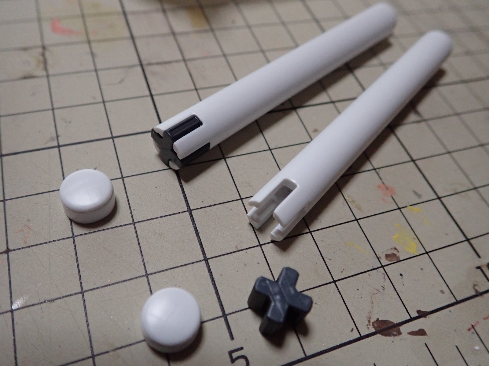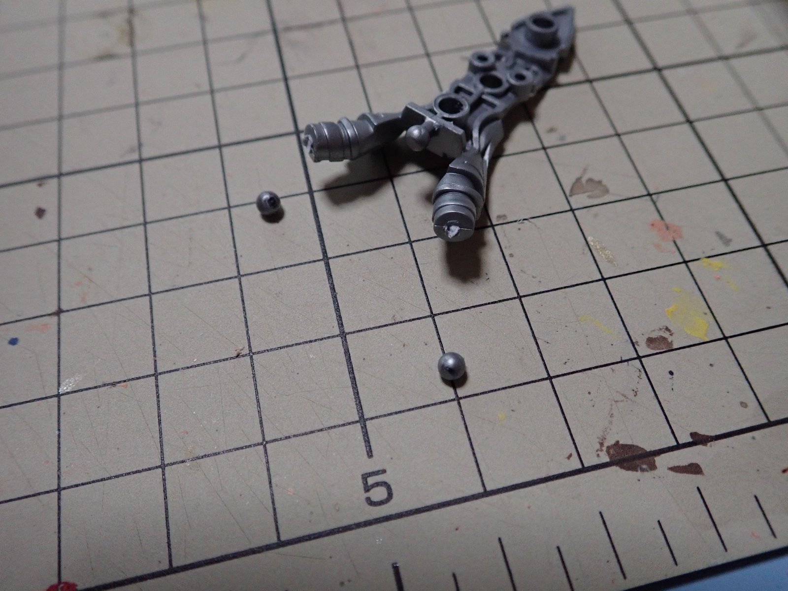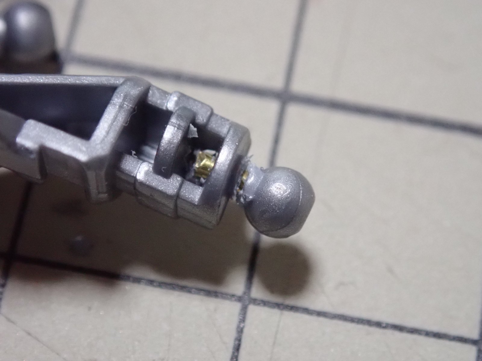 パーツの破損部分を修正していきます。まずは脚部ノズル部分。ここは真鍮線を入れてくっつけました。
