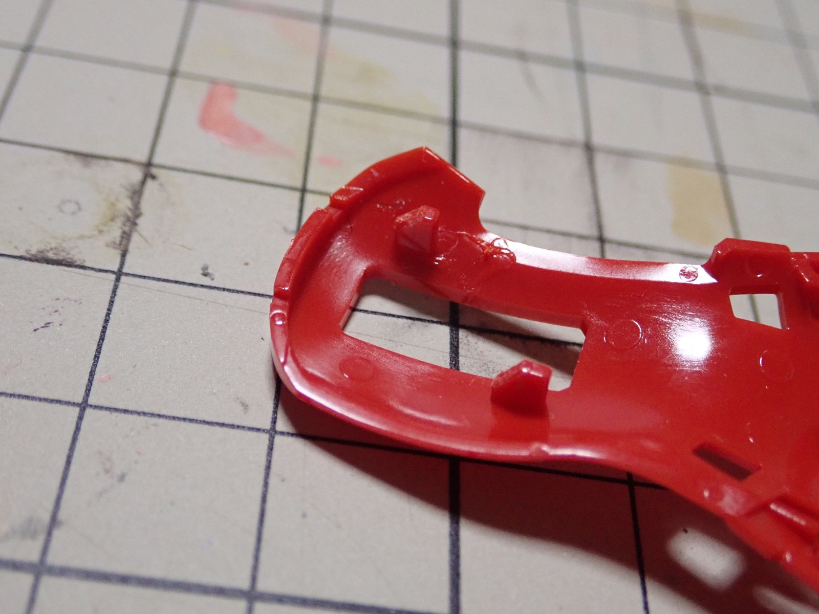 脚部カバーのダボも接着しました。接着後に斜めにカットして力が逃げるようにしておきました。
