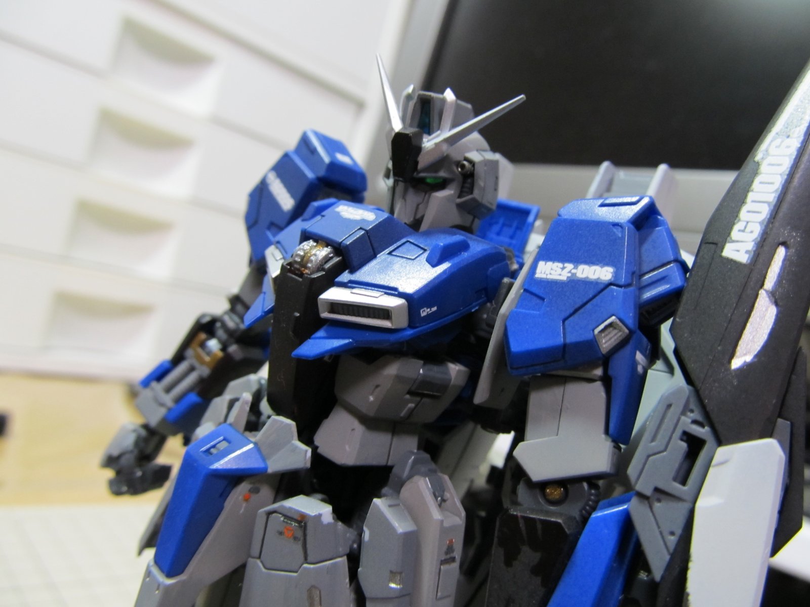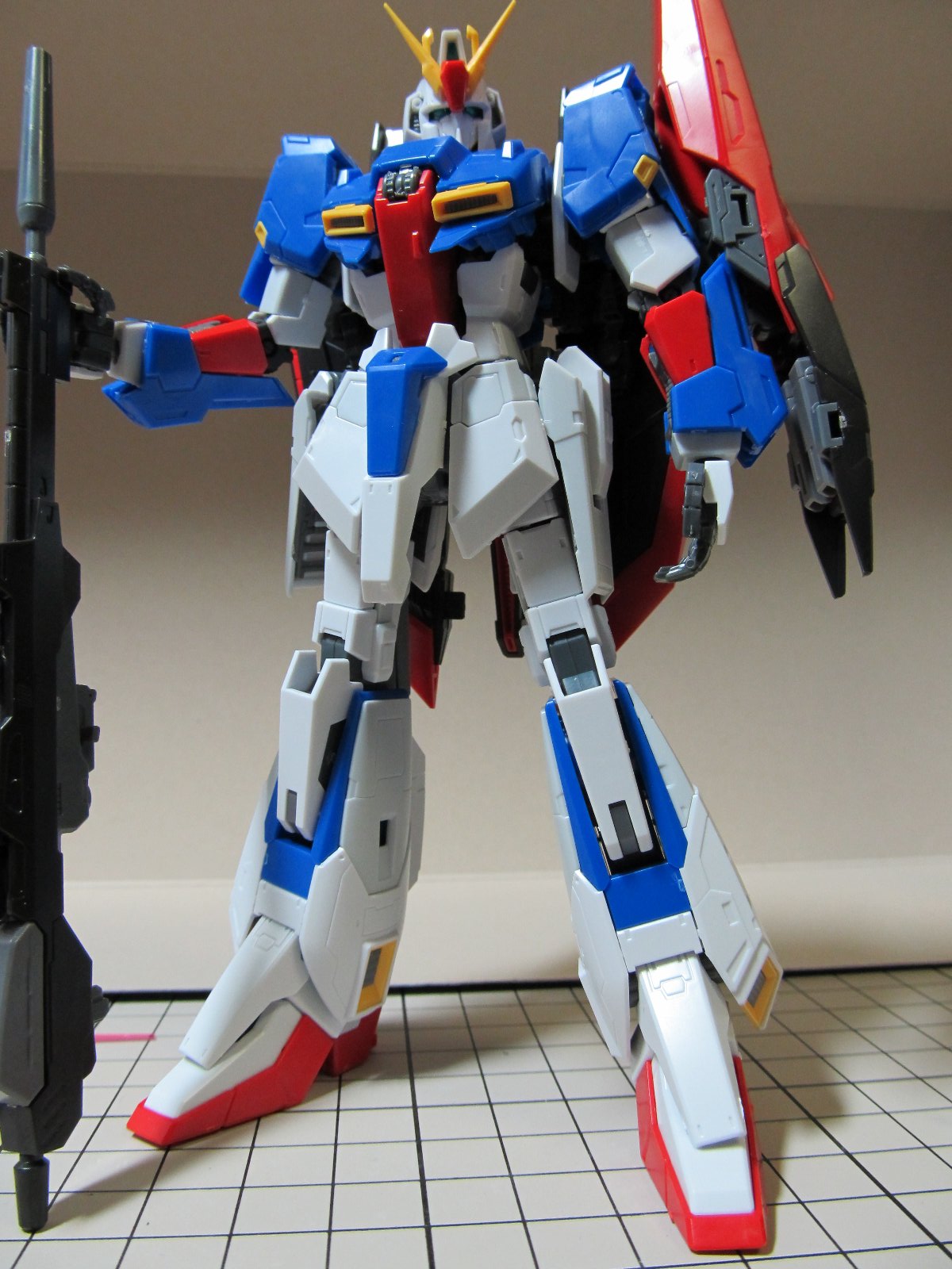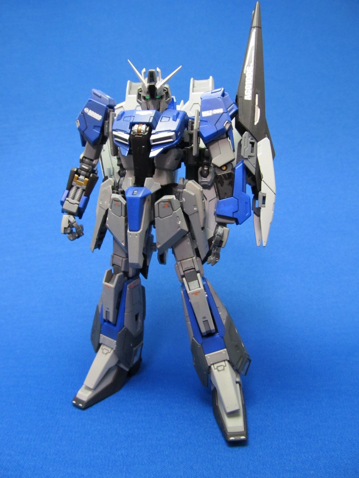 完成後に撮影し直しました。まだMS形態だけですけれども。基本的にカッチリ組みあがり変形後も綺麗に仕上がるという名作キットだと思います。Zが好きな人は購入して損はないでしょうね。ただ変形という機構上、塗装が剥げるので基本的に簡単フィニッシュをお勧めします。今回は色変えをしましたが、全塗装はお勧めできません。