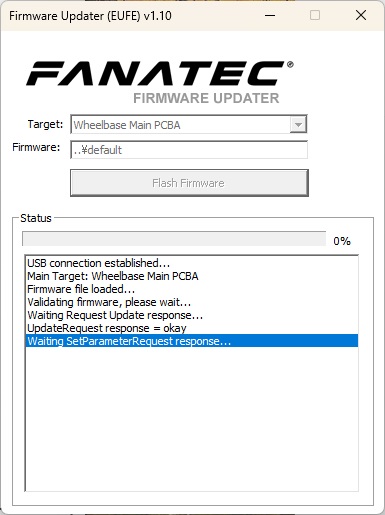 - 電源ボタンを押してもモード切替は出来ない。 という状態です。困ったのでドライバを確認するためにPCにつなぎました。 まず、PCでドライバ画面を開きます。 すると、強制的にダイアログが開かれます。 ファームウェアアップデータが起動します。しかし、この行で止まったままです。一晩そのままにしても変わりませんでした。