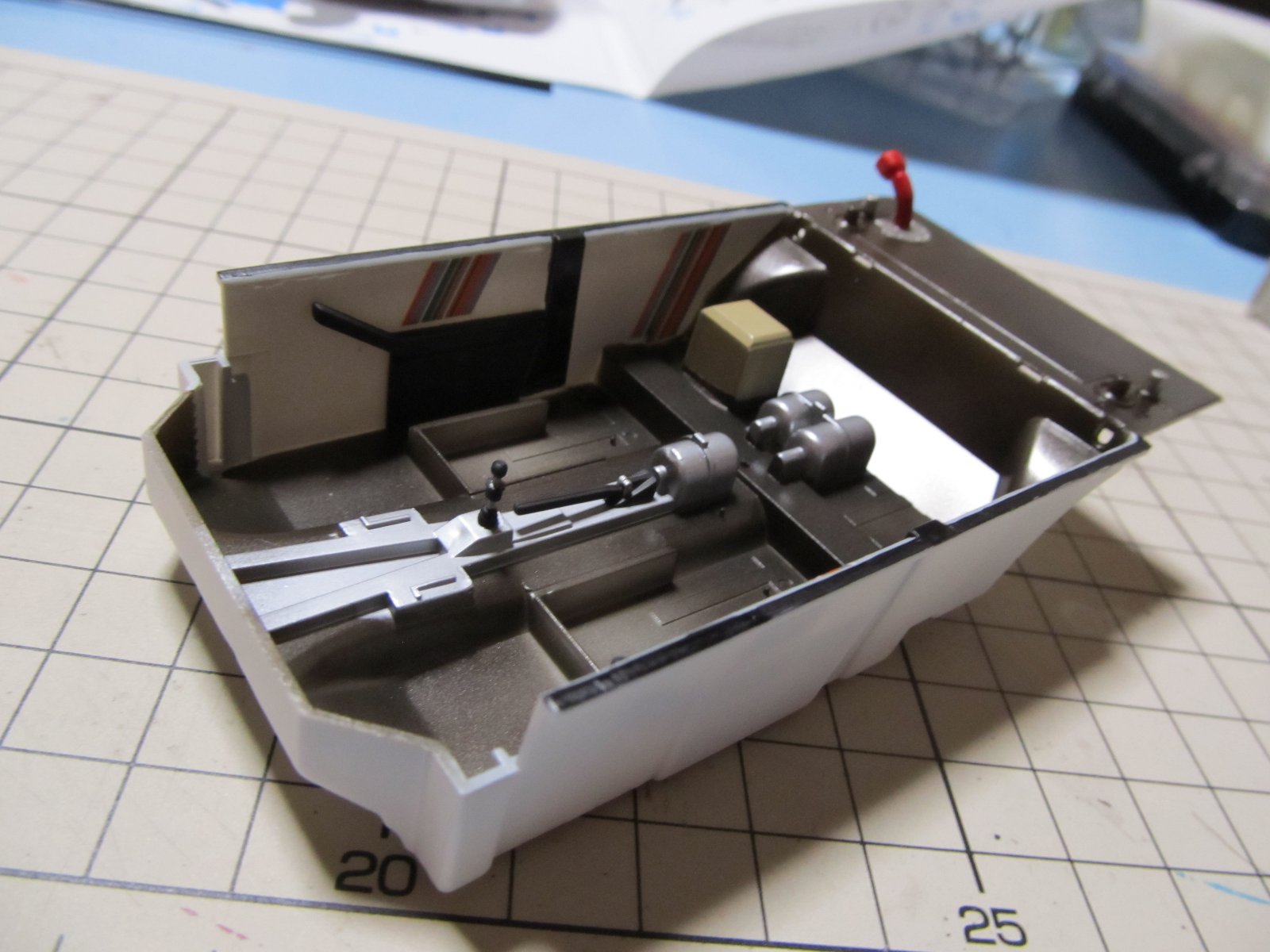 内装の塗り分けを行います。まずはエアブラシで主要な色を塗っていきます。