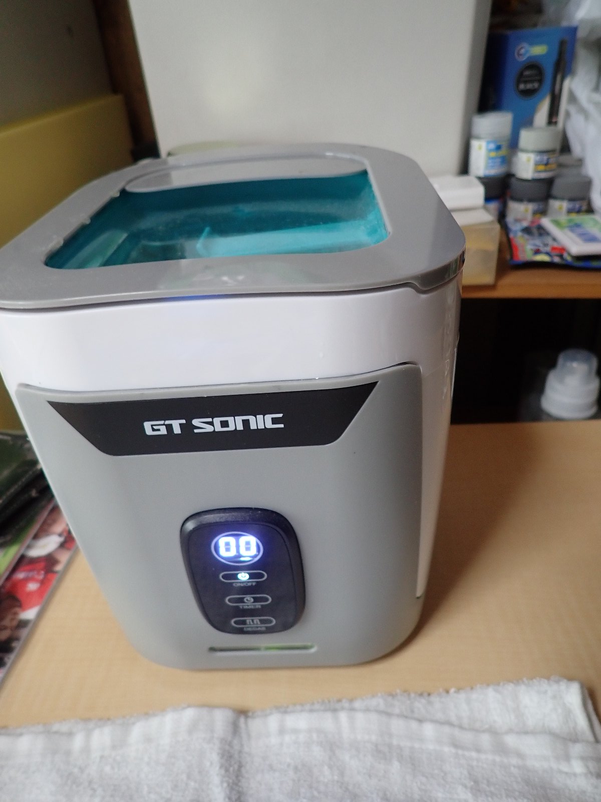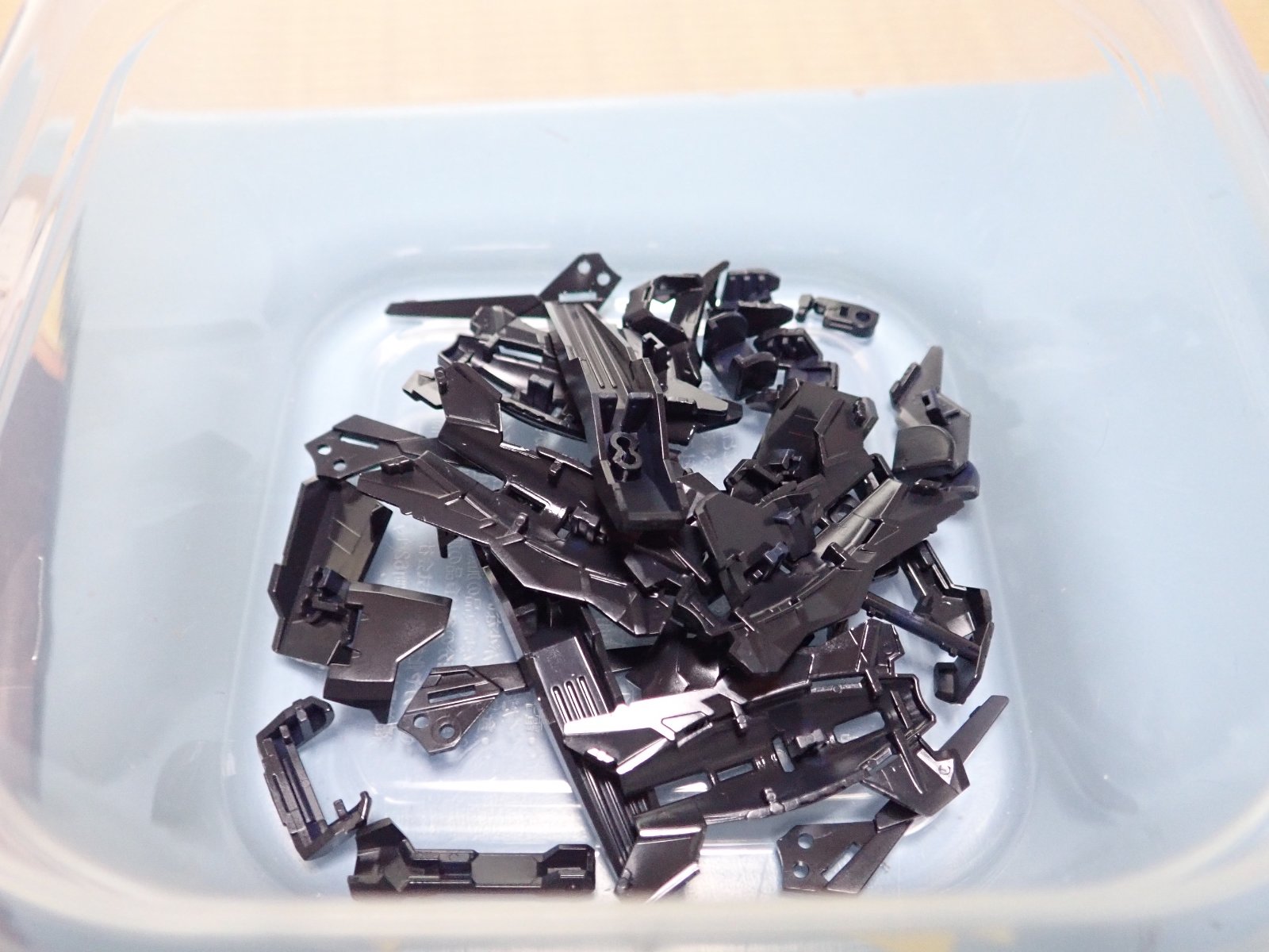 ぼちぼち始めました。表面処理を行い、久々に引っ張り出した超音波洗浄機(笑)。ガンプラはパーツが多いからあると便利だけど、必須というわけではないですねぇ。