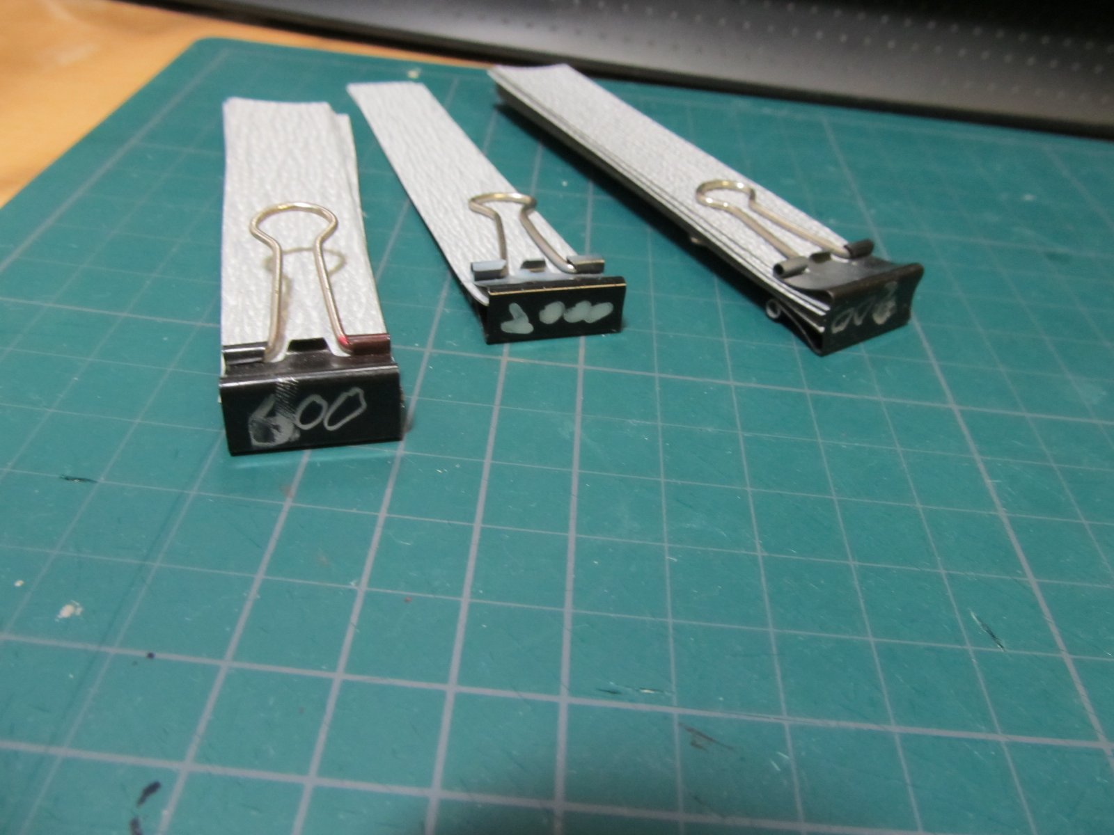 これから、ボディの整形に入ります。私はペーパーを短冊状に切って、クリップで留めて保管しています。