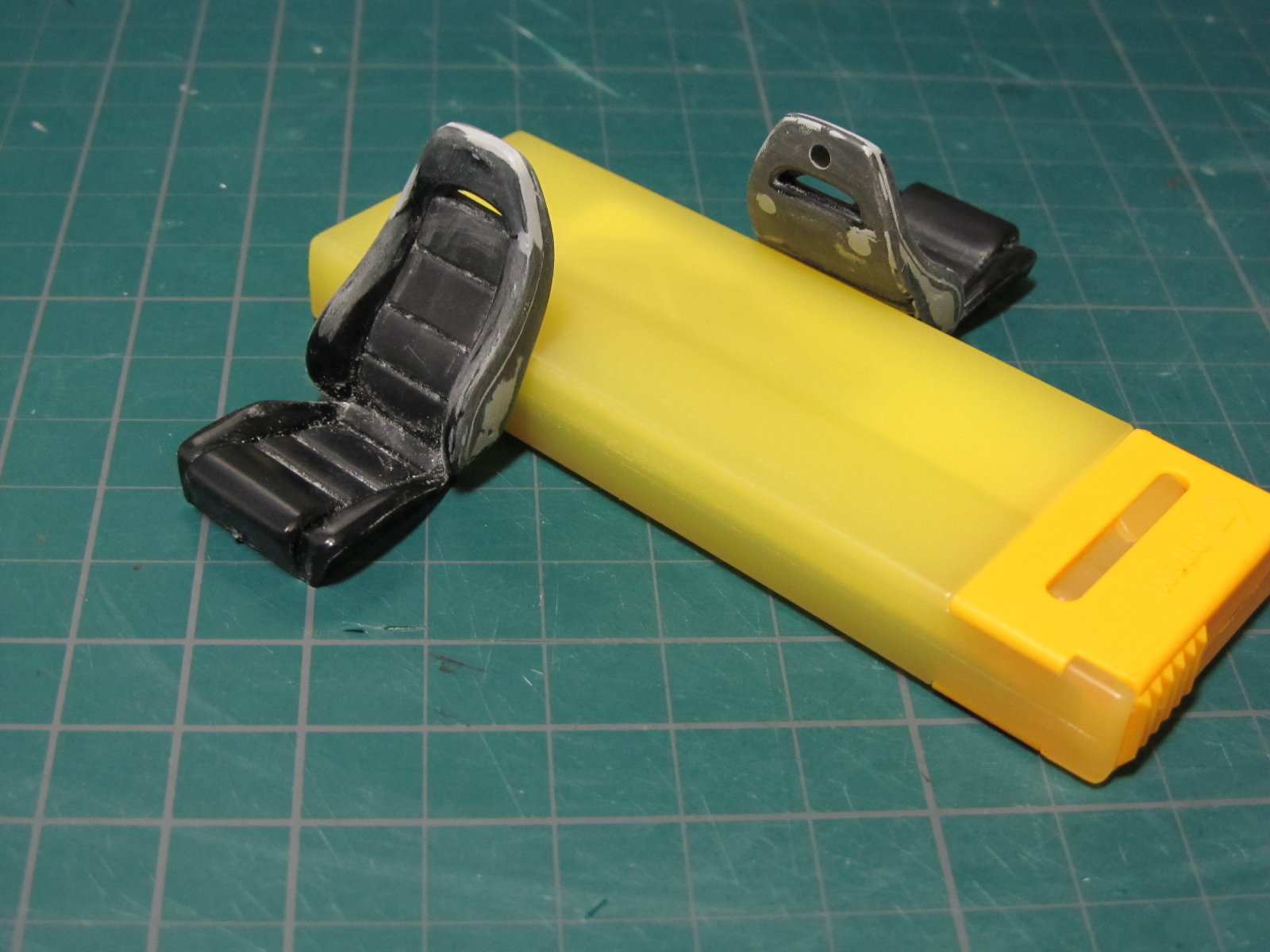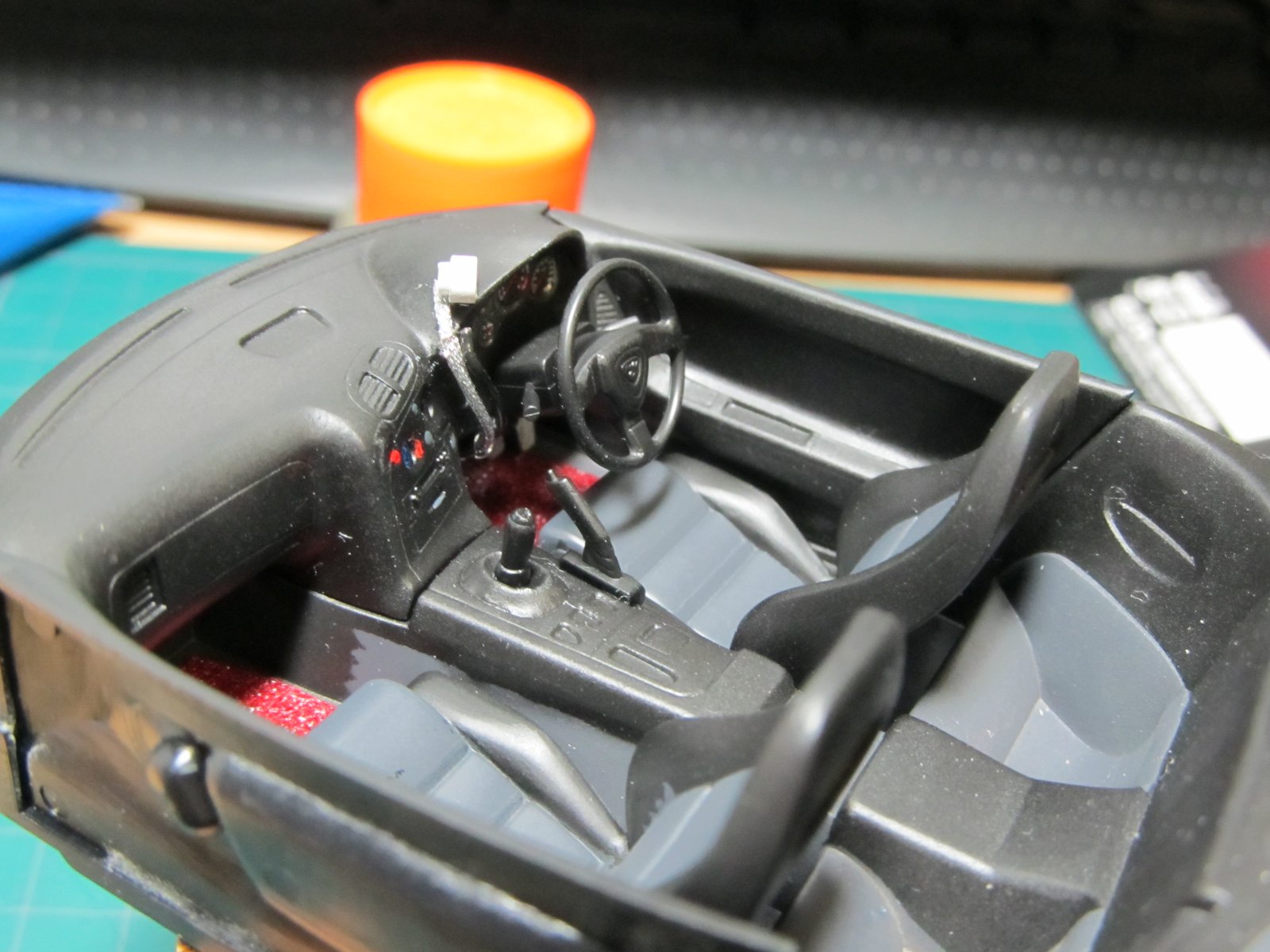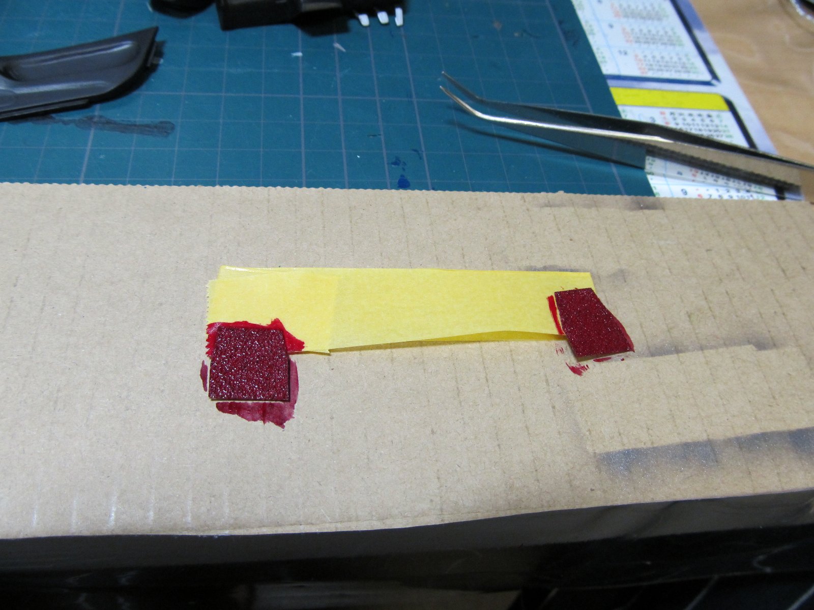 フロアマットは100番の紙やすりにマルーンを塗装して再現しました。