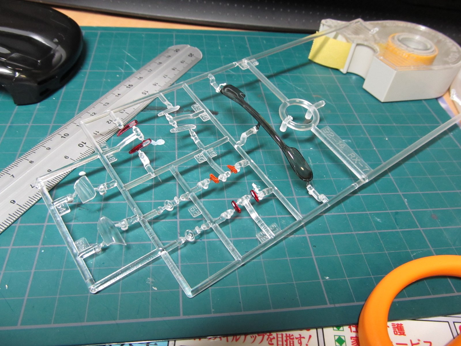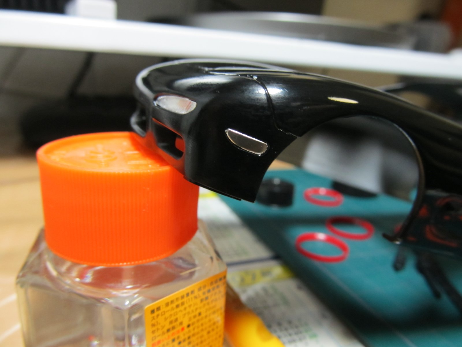 クリアーパーツ類を装着します。メタルックを付けた後に、両面テープで止めます。