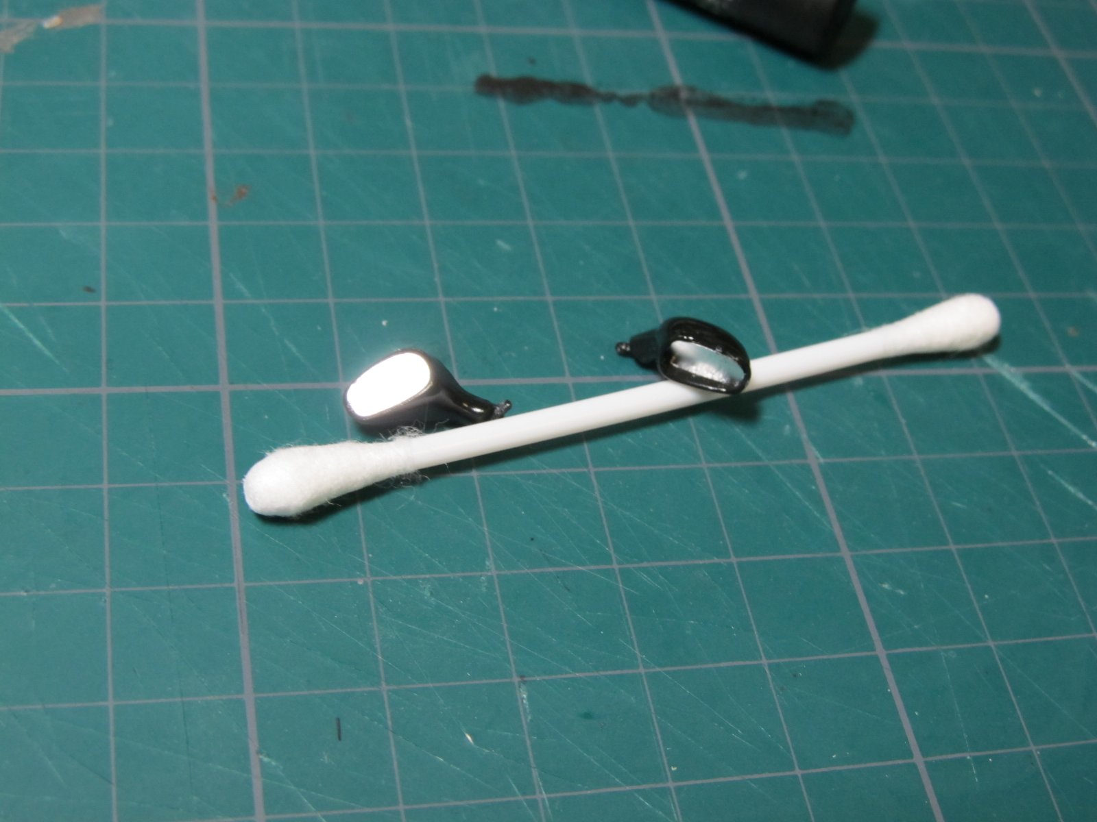 ウインカーランプのオレンジはエナメル塗料で塗った後にさっと綿棒でふき取るとパーツ装着後にぼやけて良い感じになります