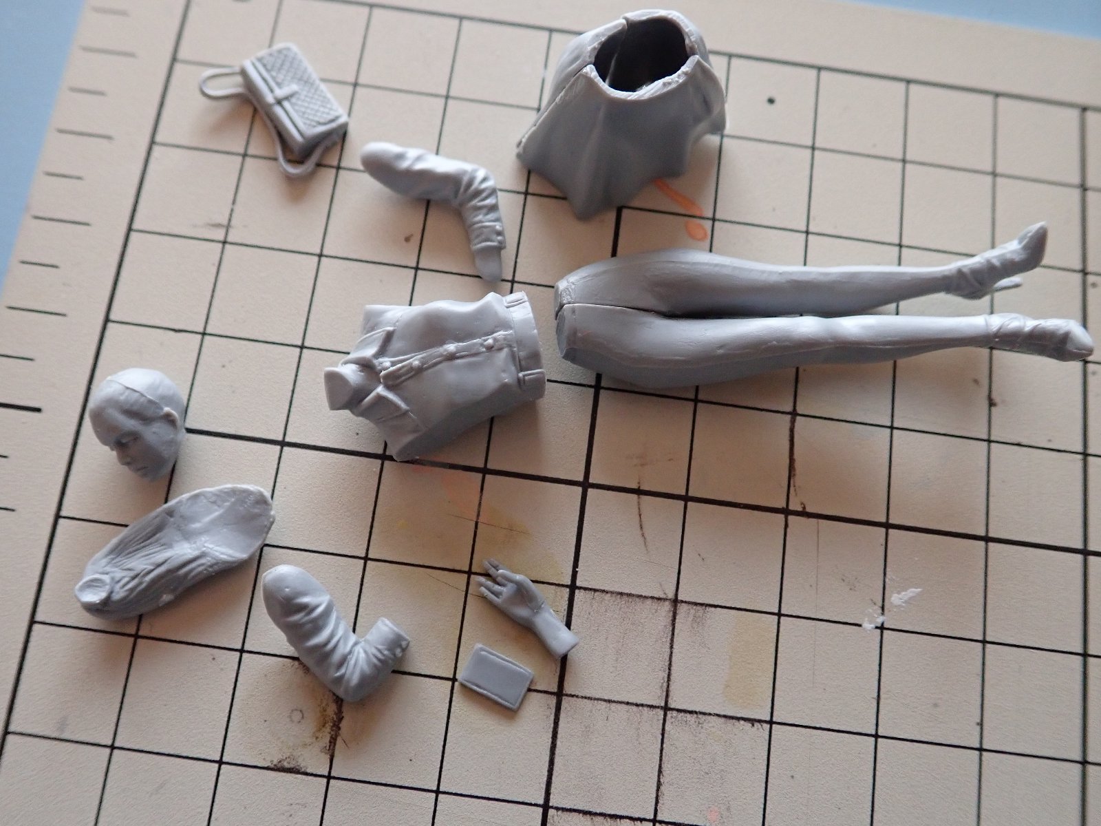 ある程度組み立てて、整形に入ります。スカートは3分割になっています。片手をポケットに入れてますが意外と合いは良いですね。表情が完全にふてくされているように見えます。 ただ、今までのキットに比べてバランスが良くあまり手を入れなくても見れるようになりそうです。