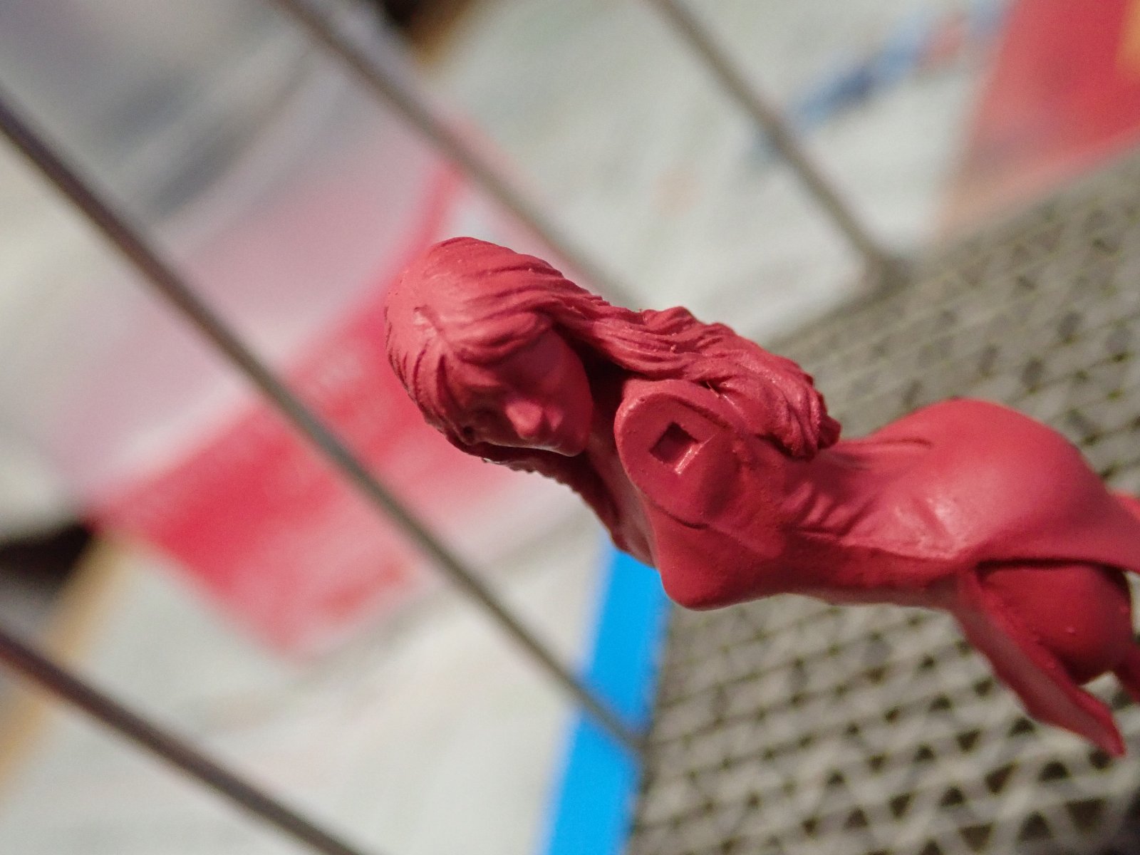 プライマー代わりのアクリジョンです。ベースカラーのレッドに白を混ぜて使っています。この後シタデルカラーで塗装します。