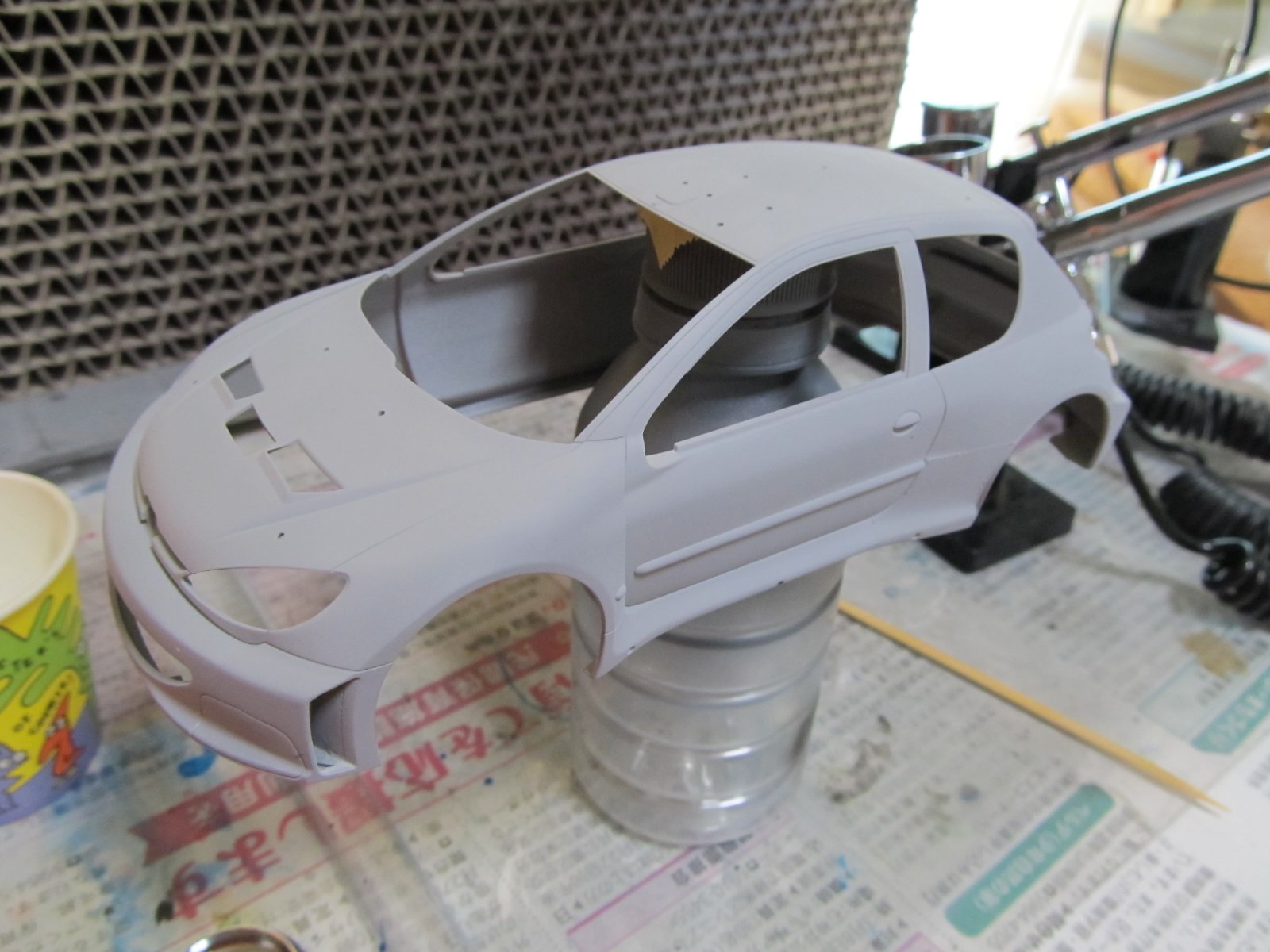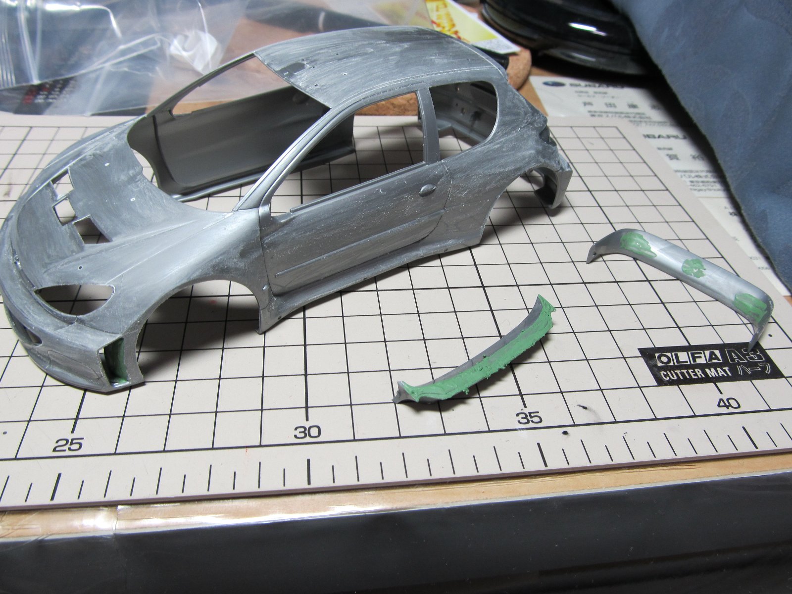 ボディ整形を始めます。捨てサフを吹いてから、1000番ペーパーで整えていきます。
