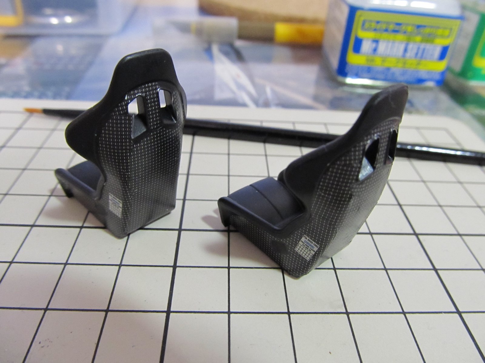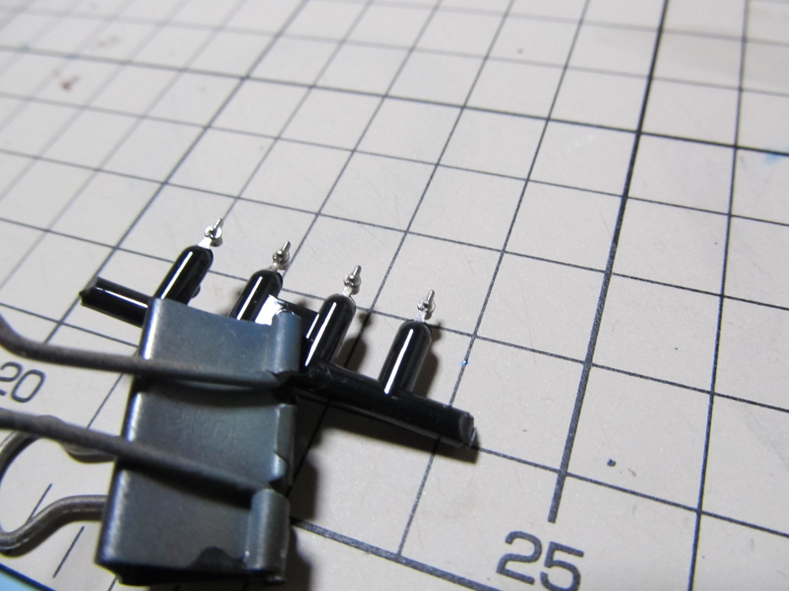 ボンネットピンはメッキを落としてから、エナメルのチタンシルバーで筆塗りしました。