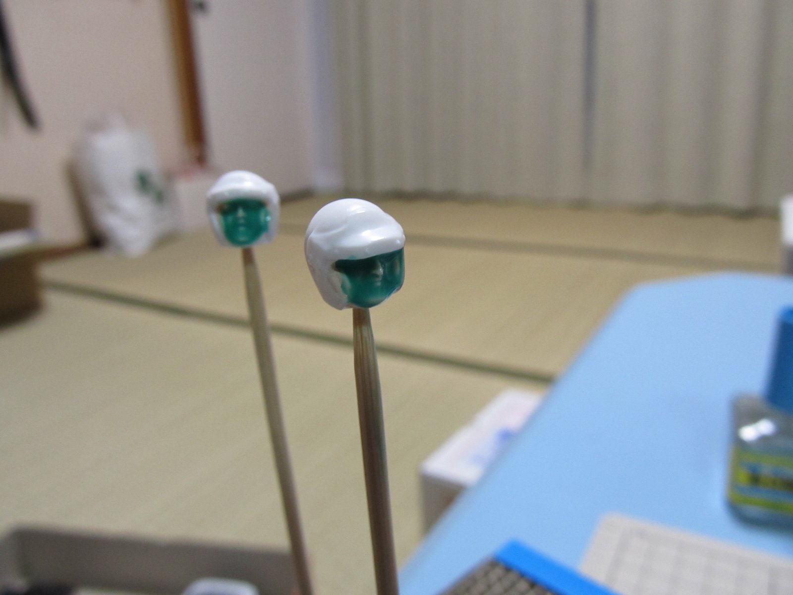 フィギュアを塗り始めます。頭は肌色を塗った後にマスキングゾルでカバーします。