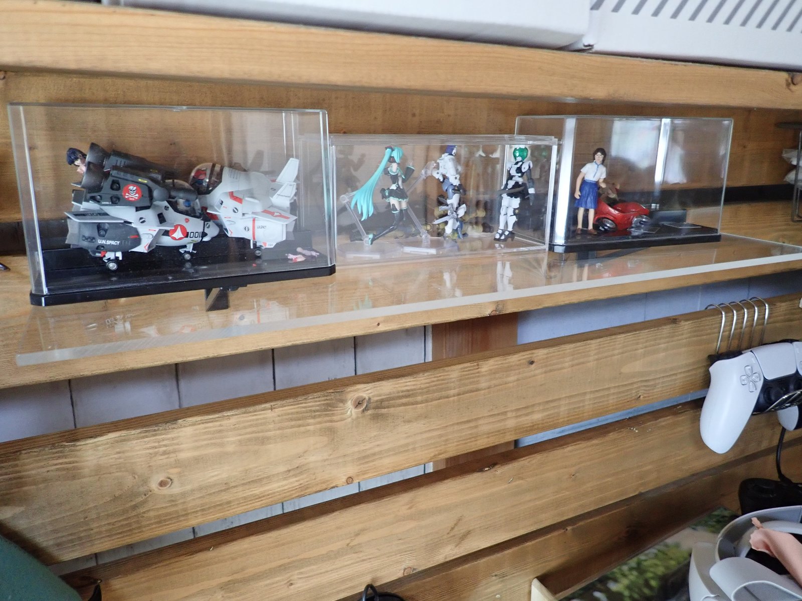物置も兼ねて1x4にかけられるアクリル棚を作ってみました。 アクリル板は16cm×54cmで、5mm厚の物を使用しています。