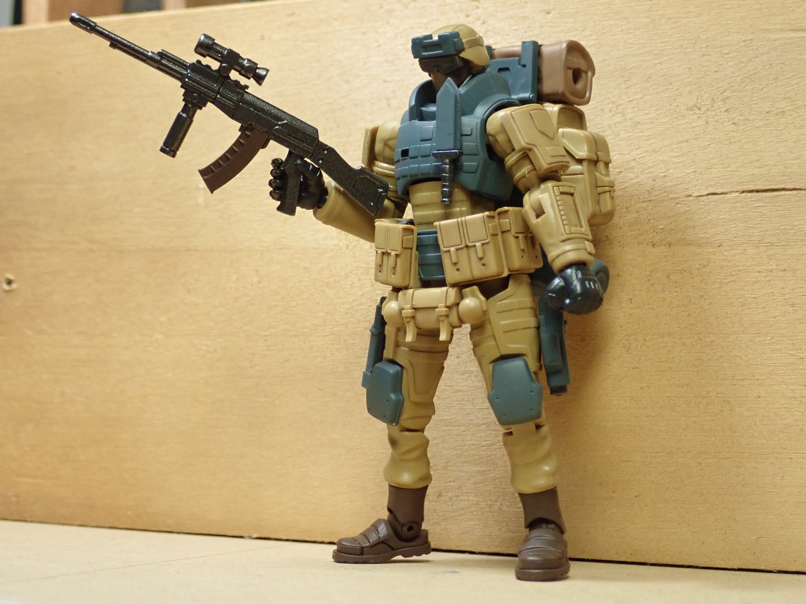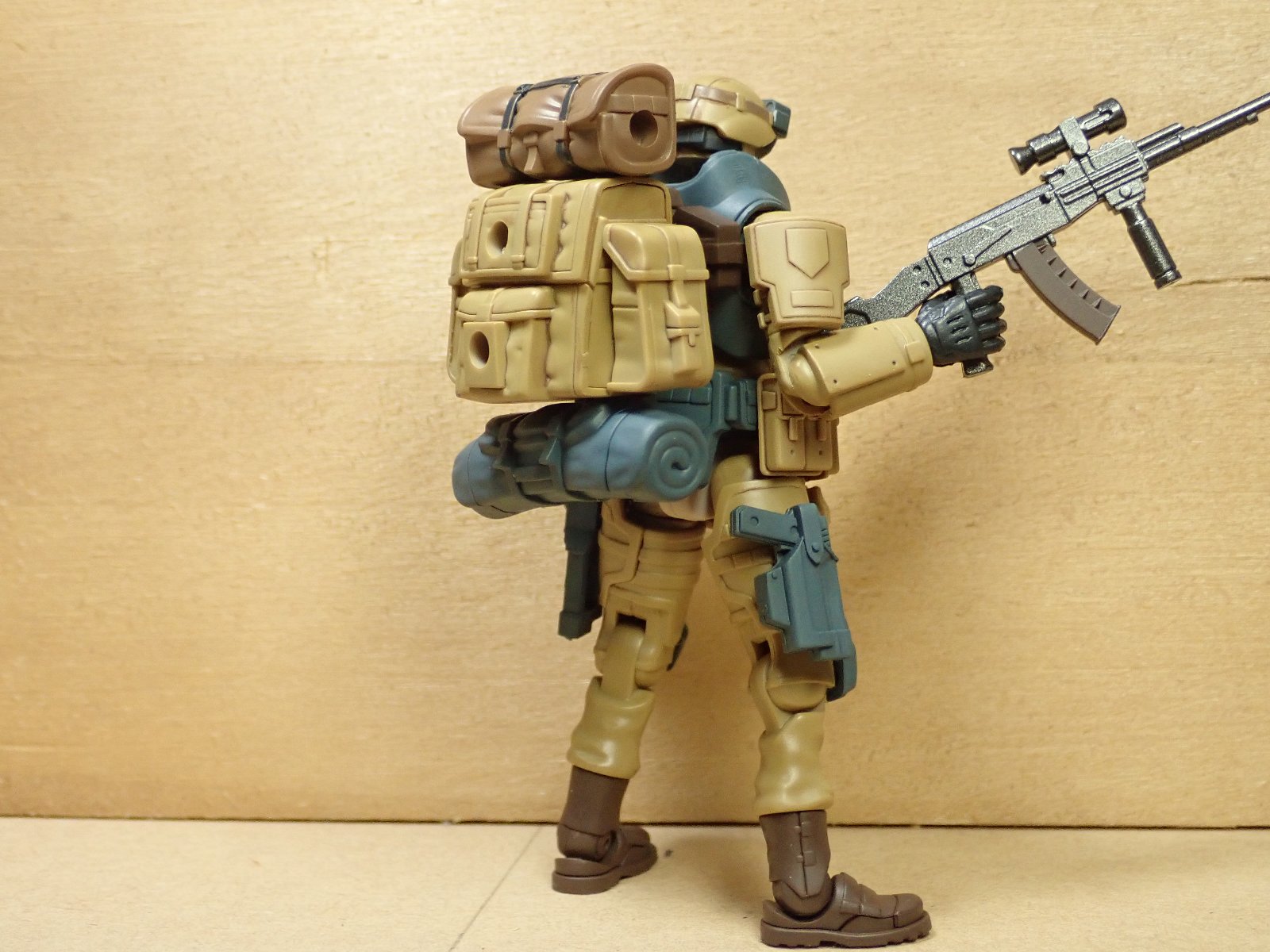 組み立てました。パーツ数が少ないのですぐ組みあがるのが良いですね。オプションの銃やナイフがいっぱい付いてきます。