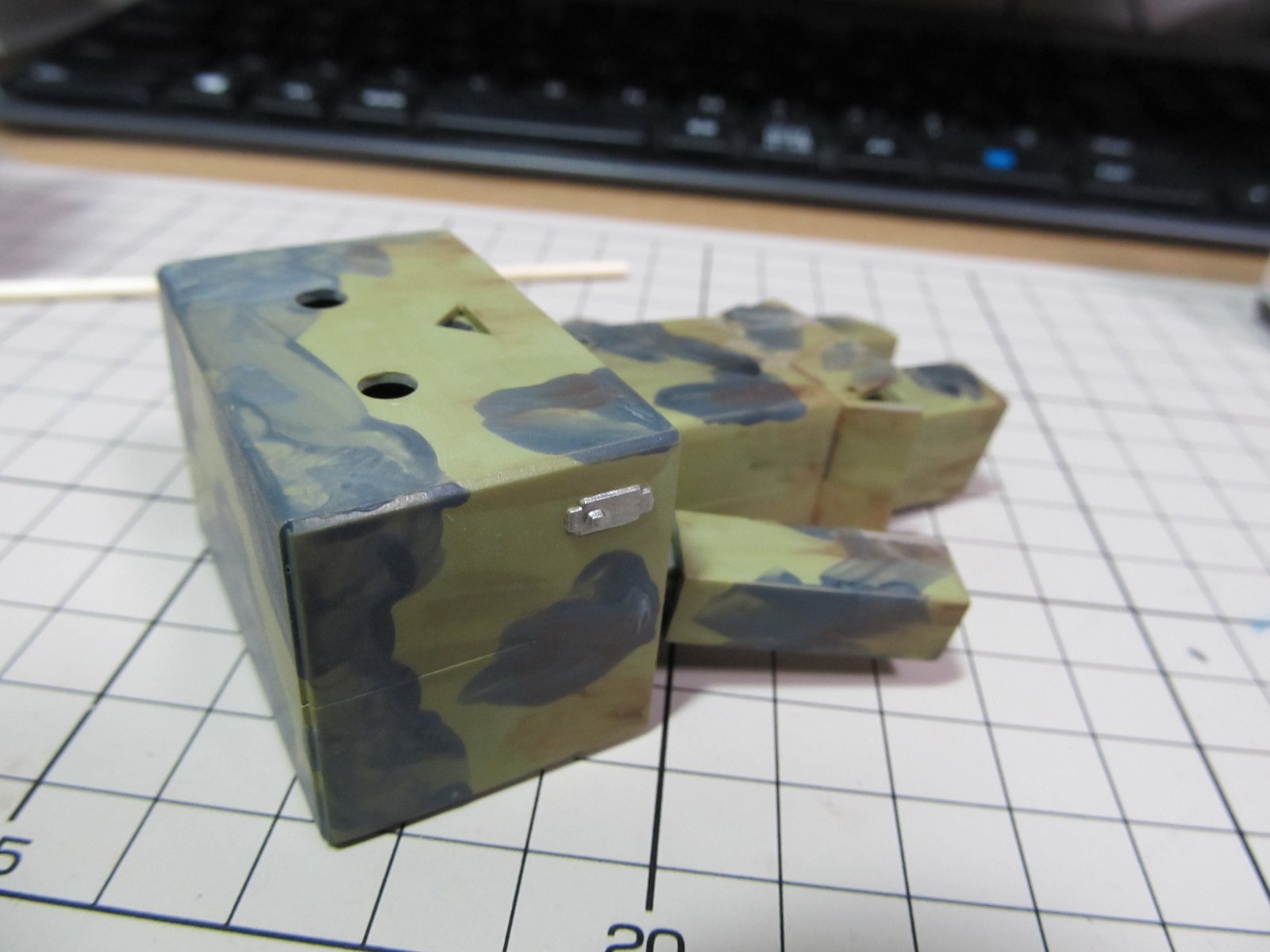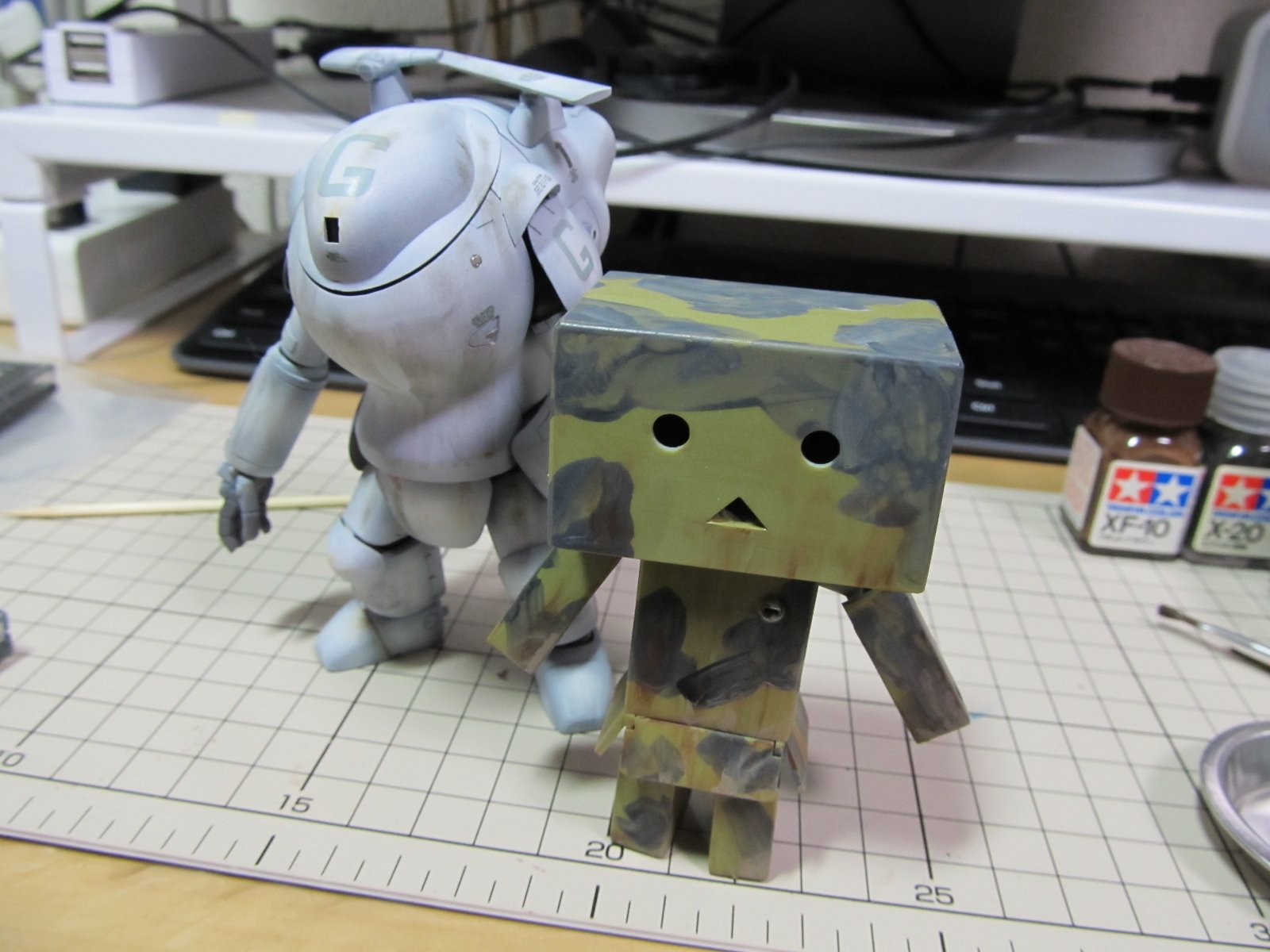 迷彩塗装はやったことありませんが、適当にグレーっぽい色を塗っていきました。