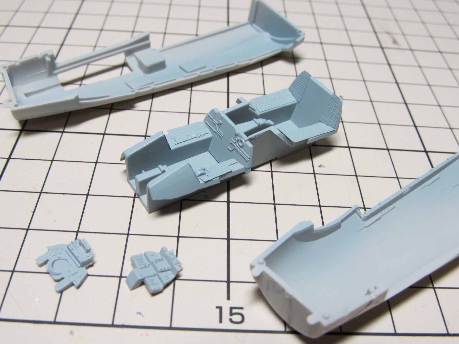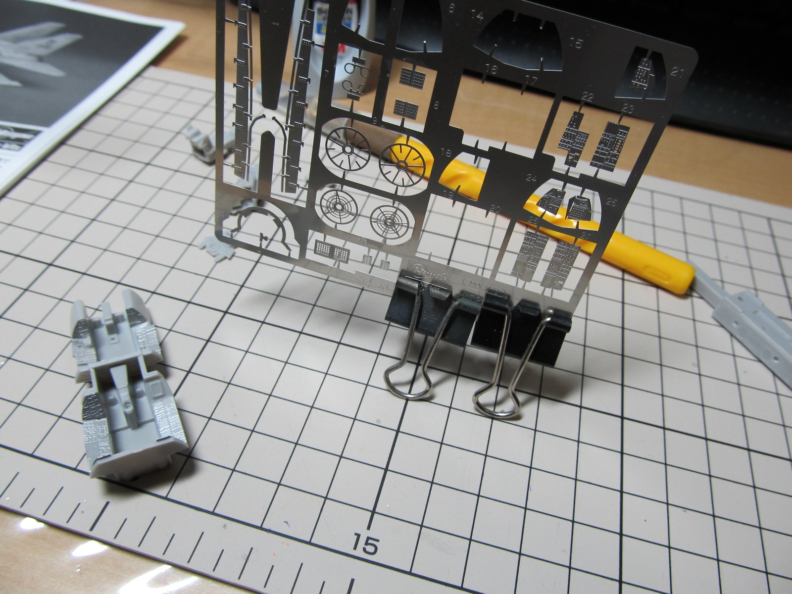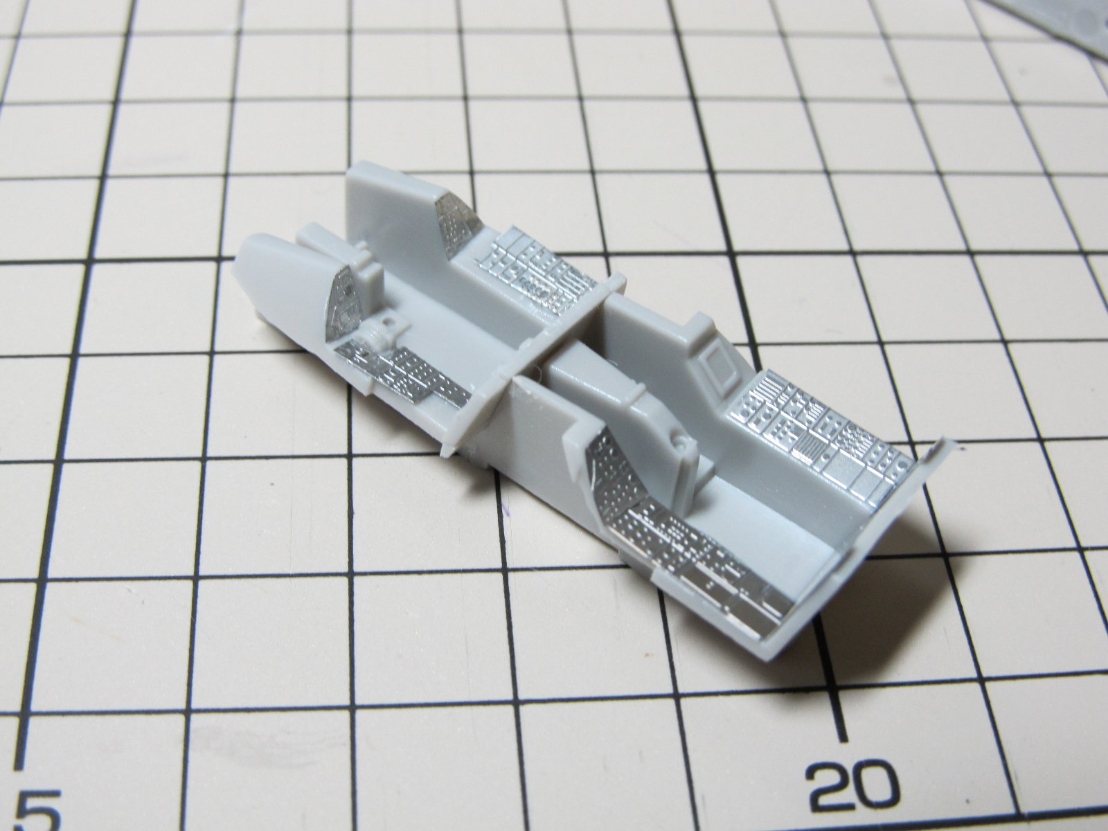 | コクピットにエッチングパーツを瞬間接着剤で付けて、メタルプライマーを塗布しておきます。 | |