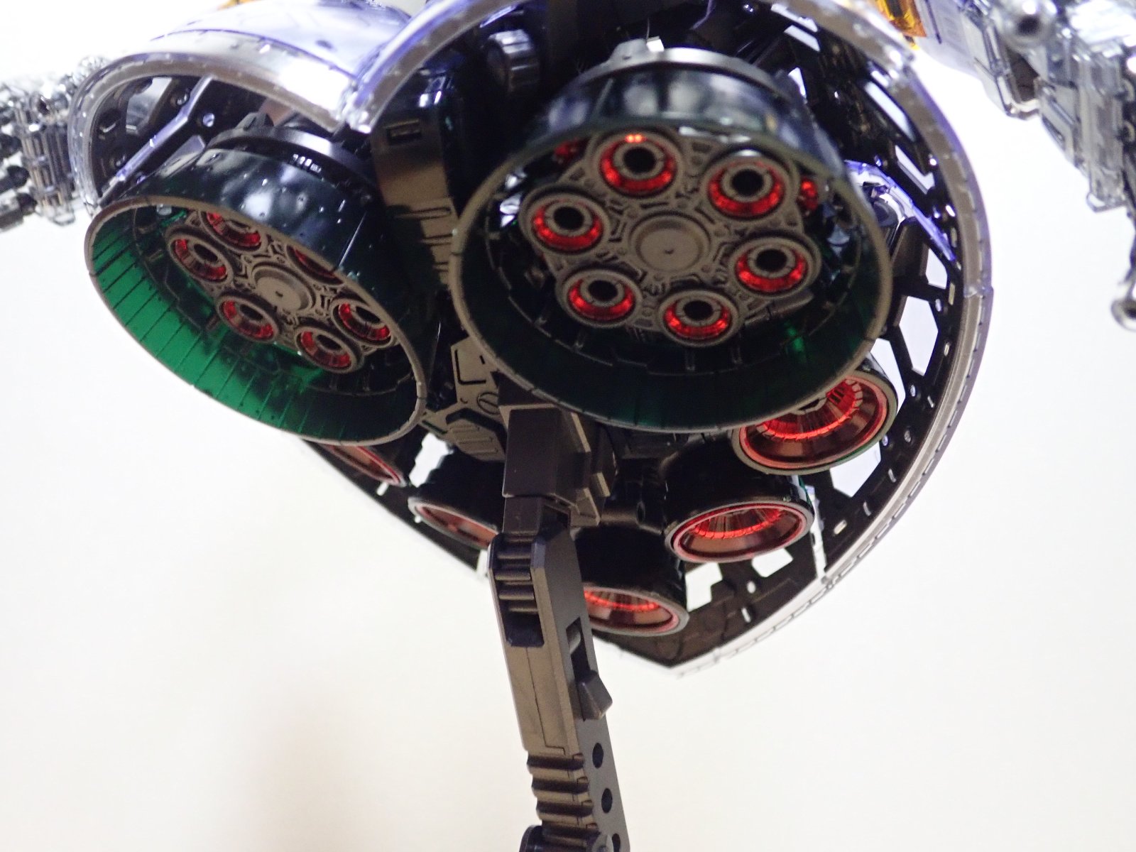 素組みしてみました。どうしてもクリアーカラー物は輪郭がぼやけてしまいますよね。内部メカを見せるキットですから。