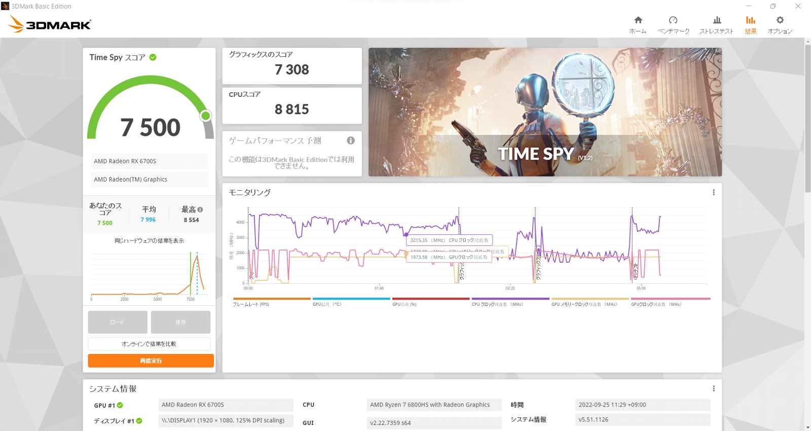 前の機種スコア5700より早くなってます。FHDで計測しました。