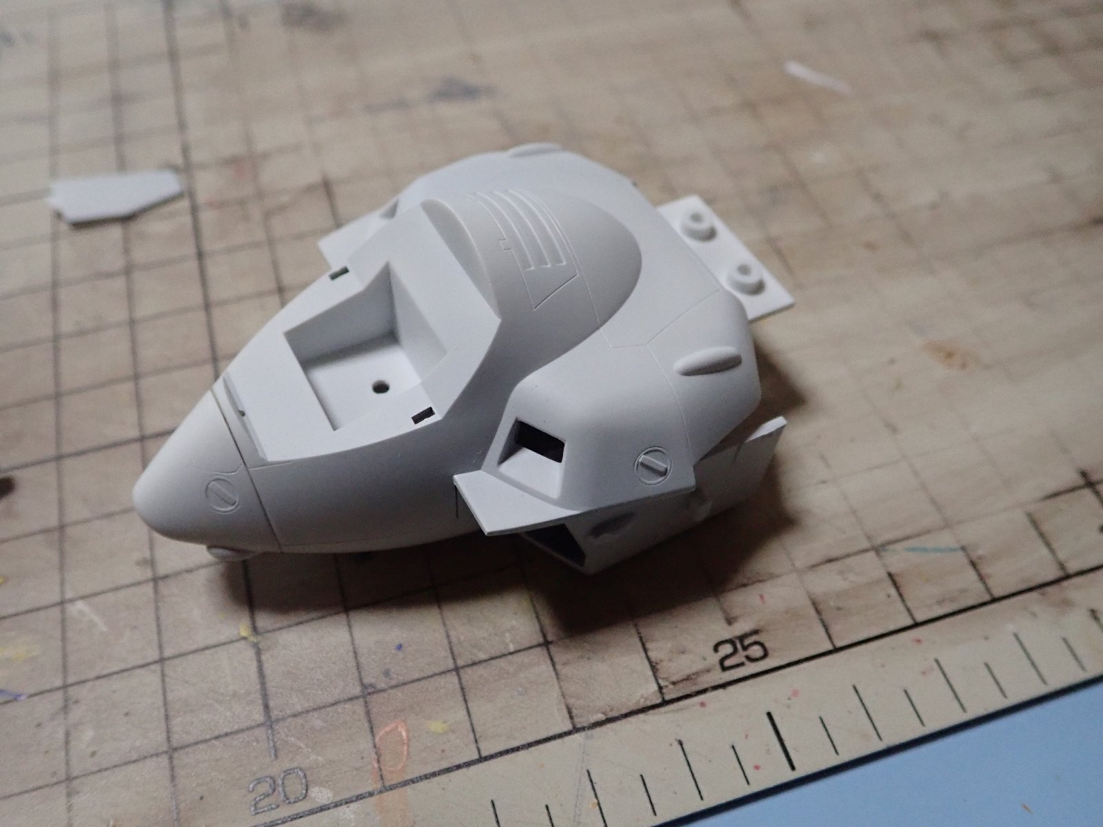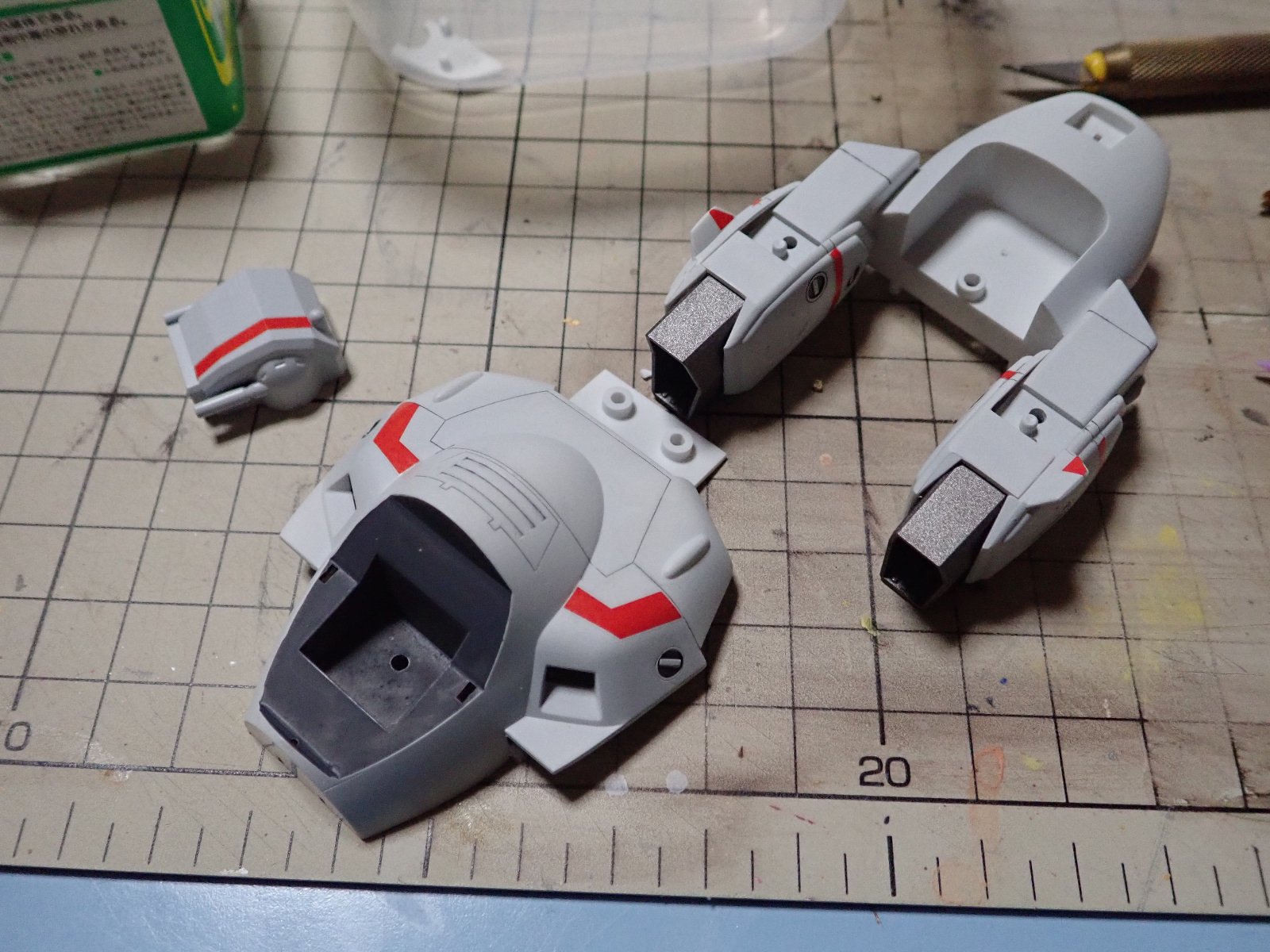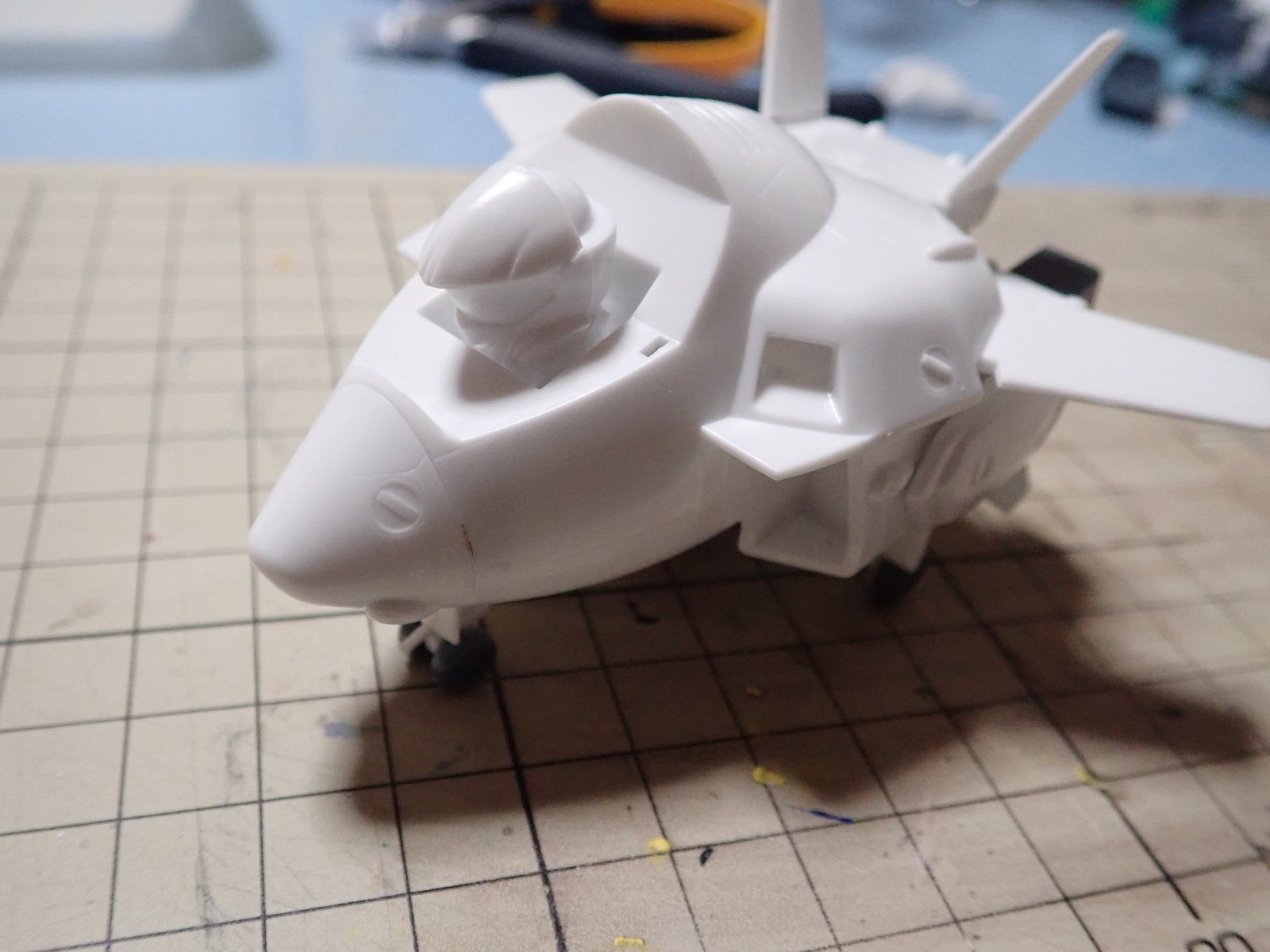 作成しました。頭部はJ型のほかにA型もついてくるんですね。やはりJ型ならTVの発進シーンのように着陸脚を出した状態で作るかな?