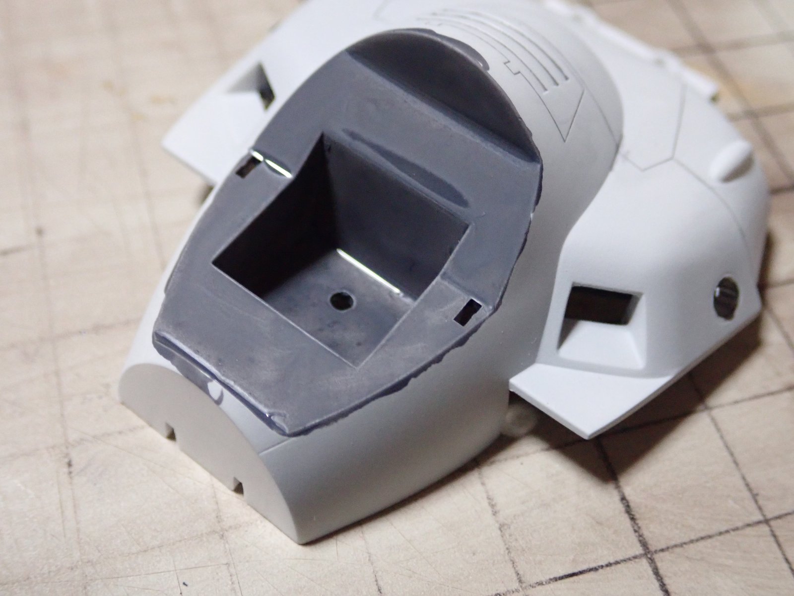 コクピットはエナメルのジャーマングレーで塗りました。後でふき取るので、はみ出しても気にしません。