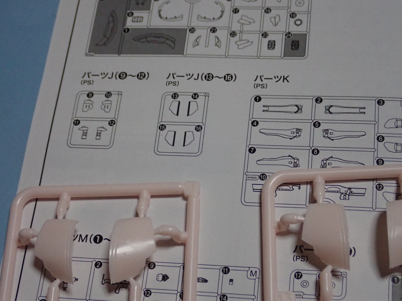 しかし、ランナー不足。なんと、パーツJ(9-12)が入っておらず、代わり(?)にパーツJ(13-16)が2つ入ってました。同じパーツJだけど番号違うよー。ひとまず購入店に問い合わせますか。いったん中断です。