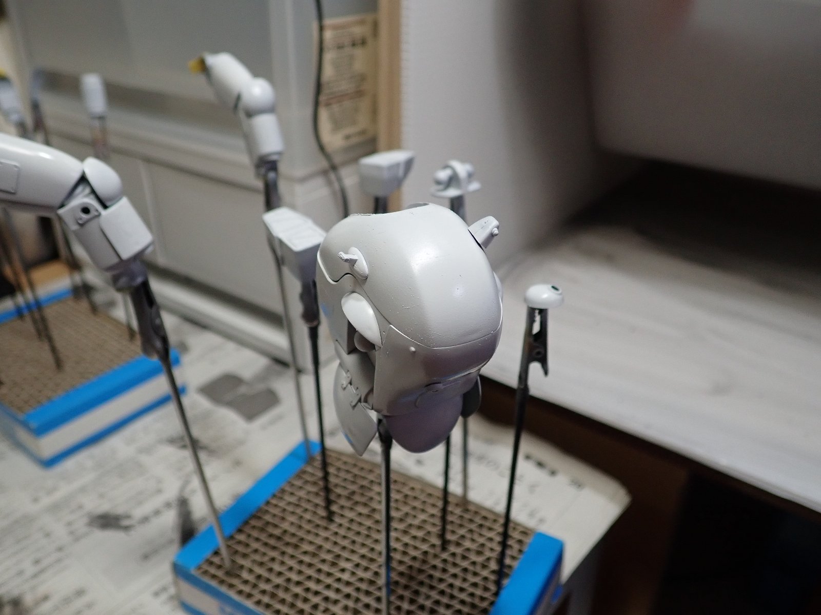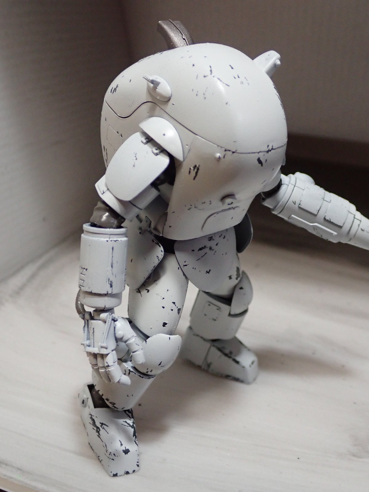 シリコンバリアーチッピングの実験台になってもらいました。タイやブラックを塗った上にシリコンバリアーを吹いて、オリジナルホワイトグレーを塗りました。