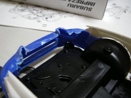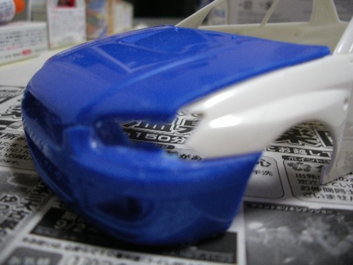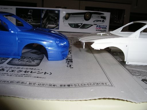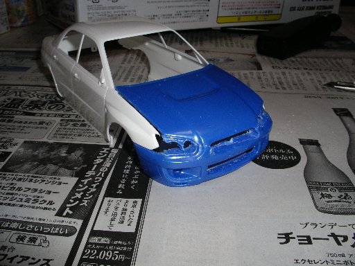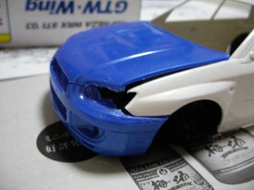 2005年式のボディもボンネットを切り取ってしまいます。その後、部品を合わせてみました。