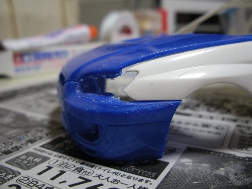 バンパー部とボンネットも切り離しました。ライト部は不要なので無くしてしまいます。