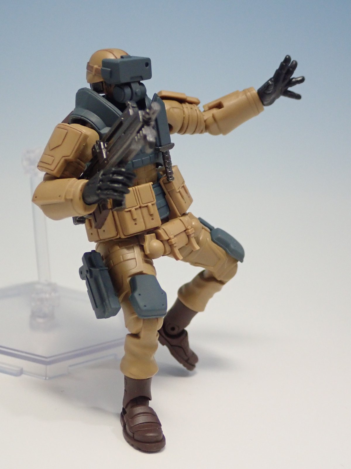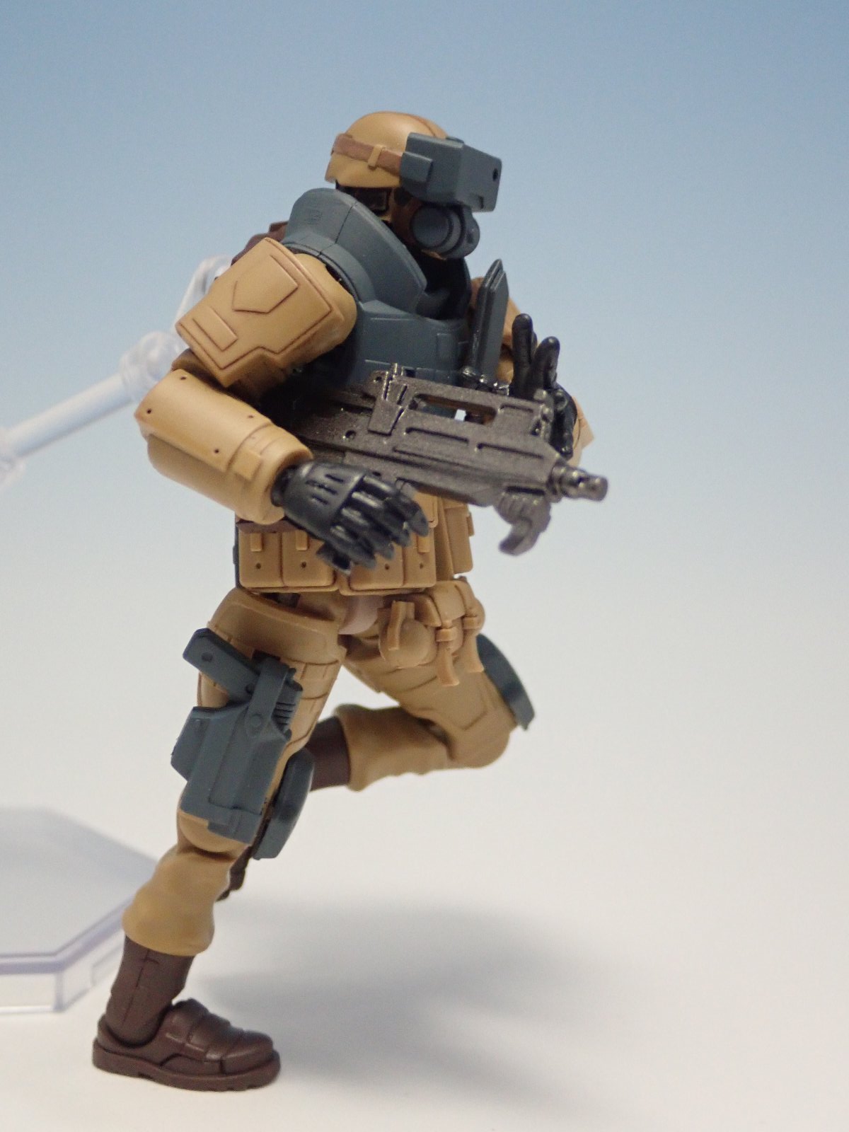 組み立てました。パーツ数が少ないのですぐ組みあがるのが良いですね。オプションの銃やナイフがいっぱい付いてきます。