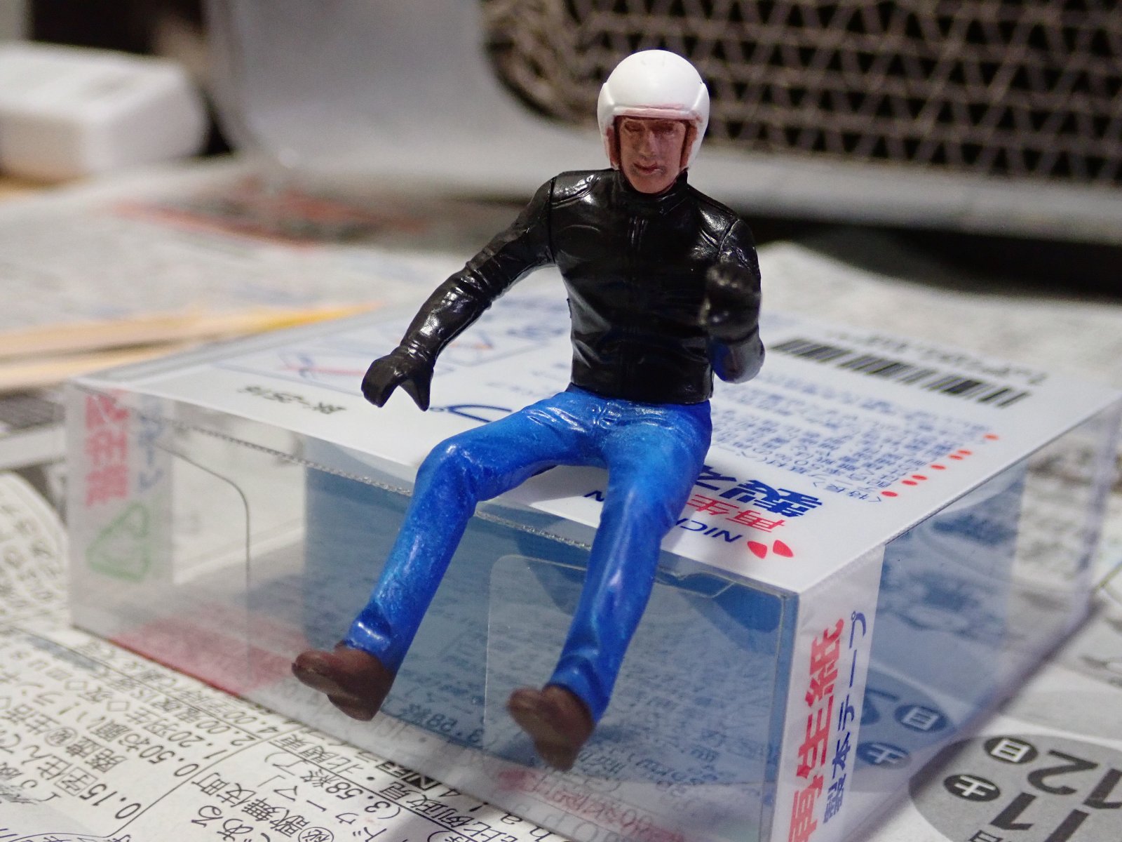 作成しました。スナップフィットキットなので30分程度で出来てしまいます。ただ、ライトの反射板などはシールでの再現なのですね。これは選択式などが良かったなぁ。また、フィギュアはラリードライバーのような柔らかい材質で出来ています。