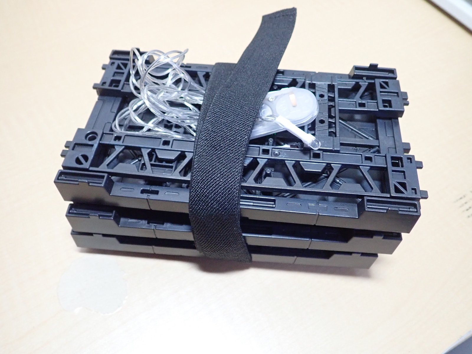 それっぽいモールドもたくさん入っていて雰囲気が出ています。しかも横だけではなく上にも連結できるのが良いですね。今回はセリアにて見つけたので購入しましたが、まずは6個ほど確保しました(笑)。ちなみに写真に写っているのはRGガンダムです。