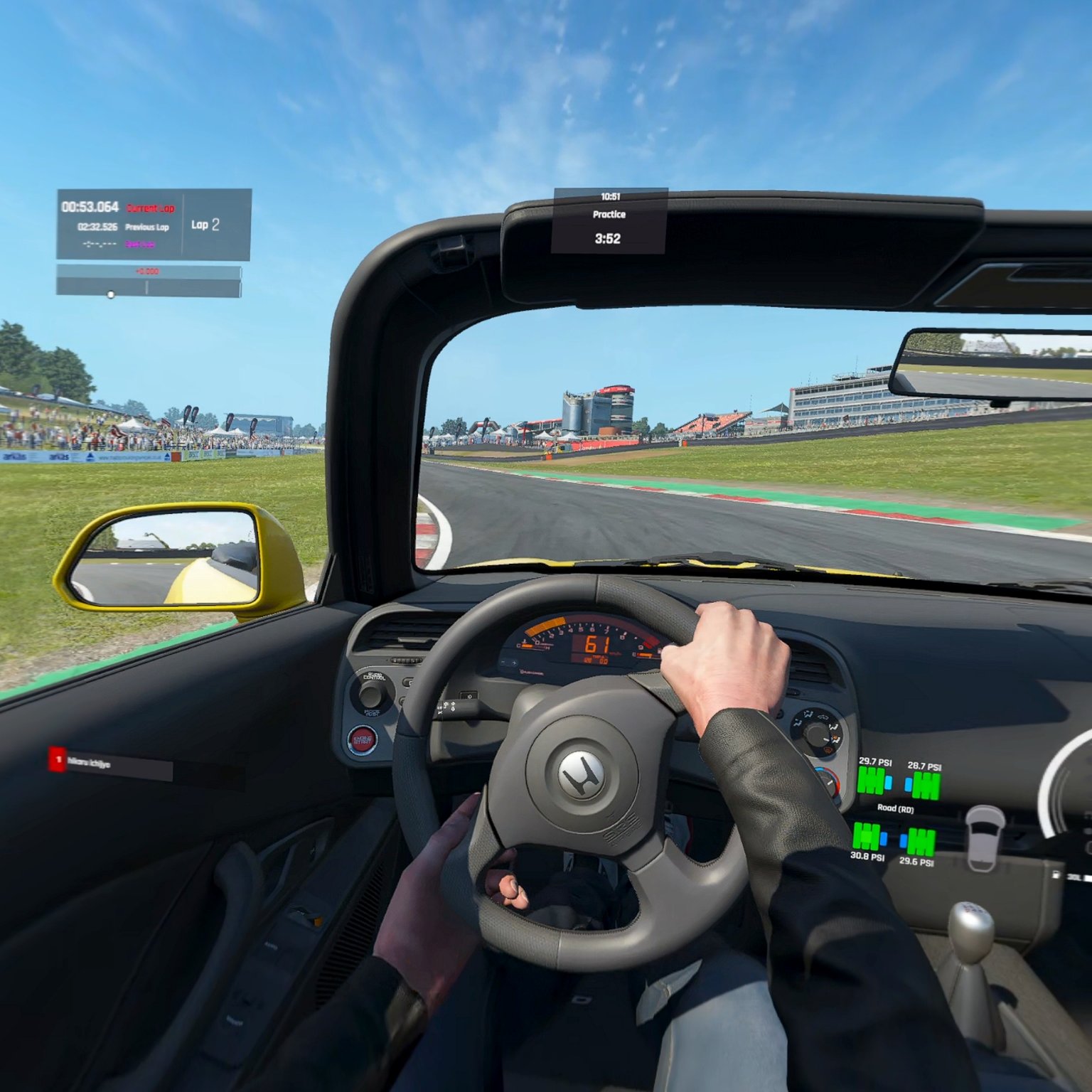 ACCのVRに比べて色が濃く、見やすいですね。解像度的にも見づらい箇所は少なく普通に出来ます。まぁ、単体で走ってますしね。ドライブがてらの走りには最高かもしれません。