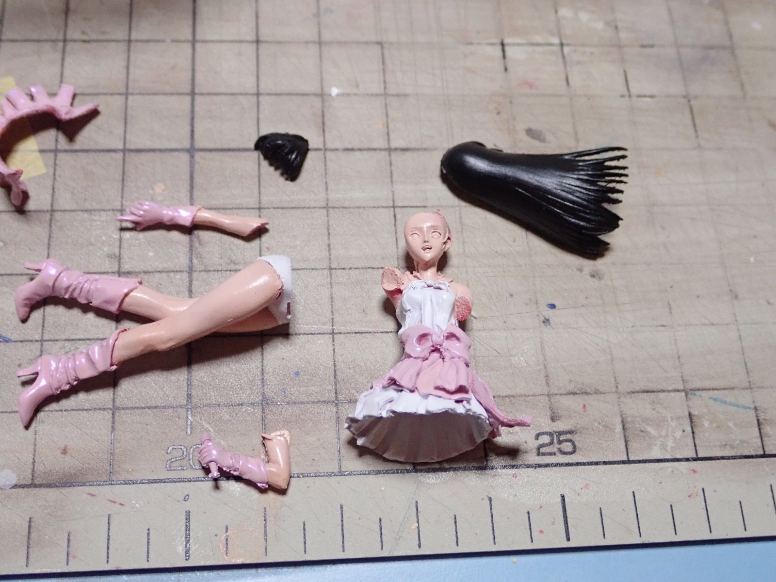 ミンメイを作っていきます。まずは表面処理した後にアクリジョンベースの赤でサフ代わりに塗ってます。その後基本塗装をしてみました。今回はエアブラシを使って塗ってみました。